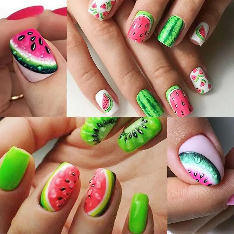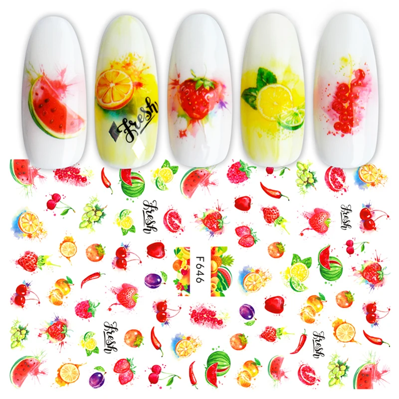 Летние 3D наклейки для ногтей с фруктами, арбузом, клубникой, оранжевыми цветами, листьями