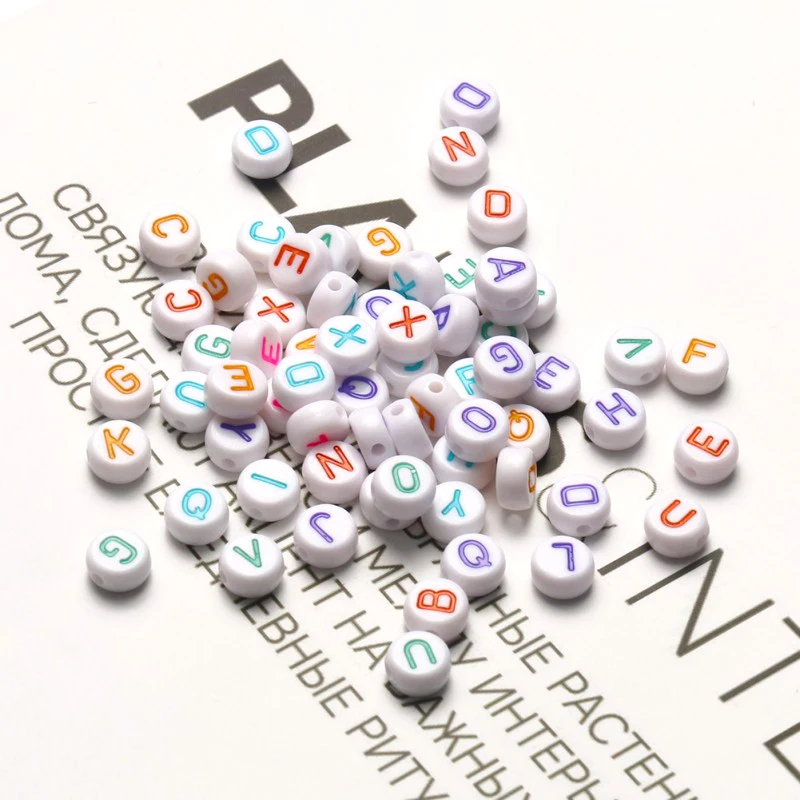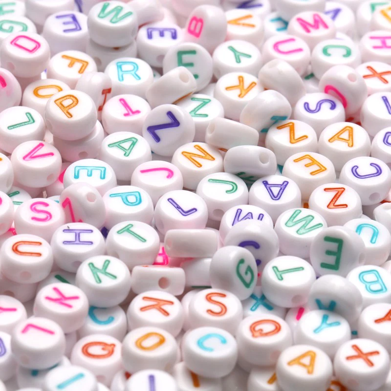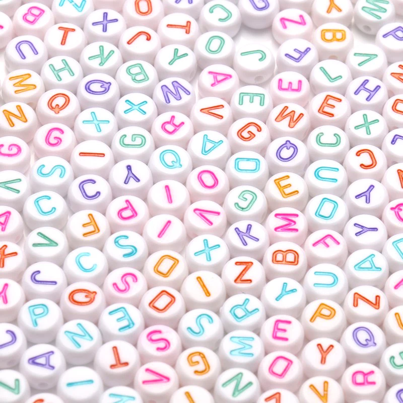 Бусины-разделители для рукоделия, браслета, ожерелья, 4*7 мм, с разноцветными буквами, круглые акриловые бусины