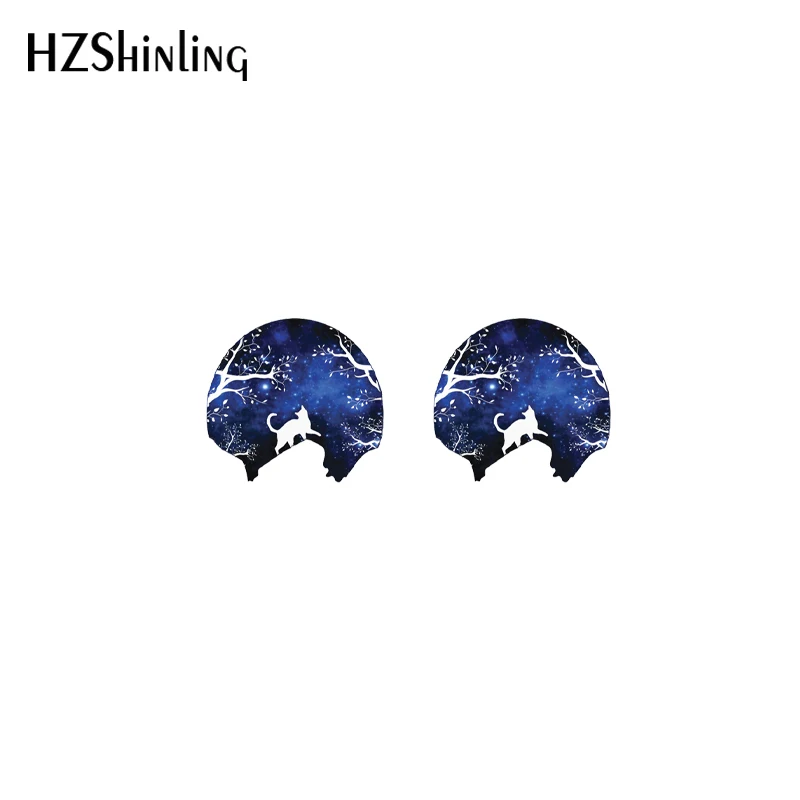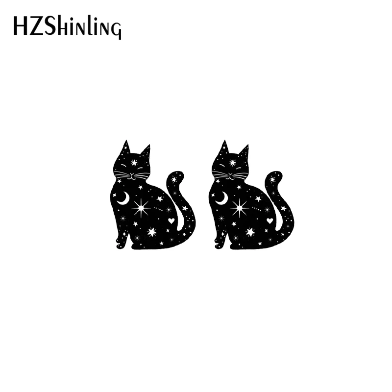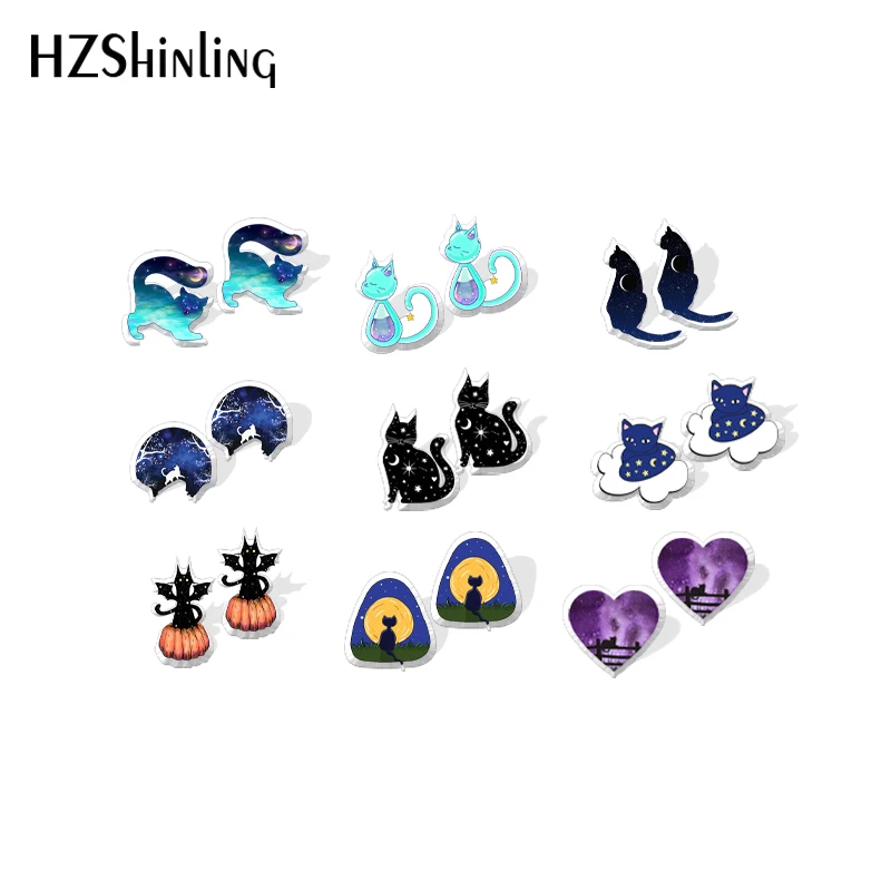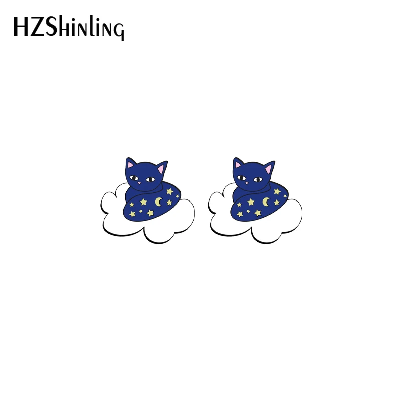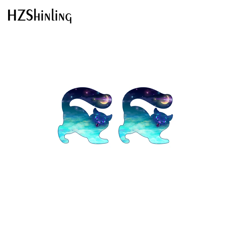 Женские серьги-гвоздики из акриловой смолы, серьги ручной работы с изображением космической галактики и кота, ювелирные изделия из эпоксидной смолы, подарочные украшения для девочек, 2021
