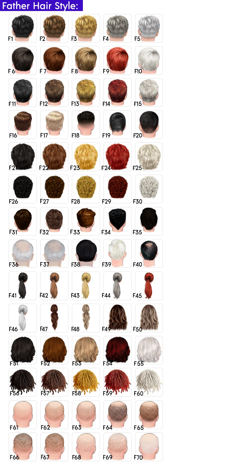 Одежда для отца:Стиль волос отца:Количество стильных волос: