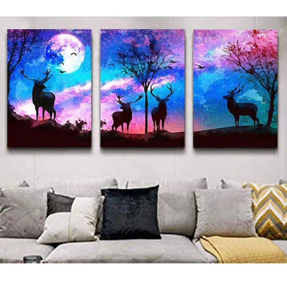 Олень Триптих алмазов картина камни в форме ромба круглый абстрактный пейзаж, живопись комплект из 3 предметов 3d картины DIY Алмазная вышивка A689