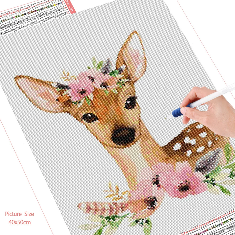 HUACAN 5D Diy алмазная живопись с оленем, алмазная Вышивка Цветы изображение мозаики стразами украшение для дома