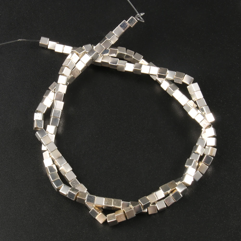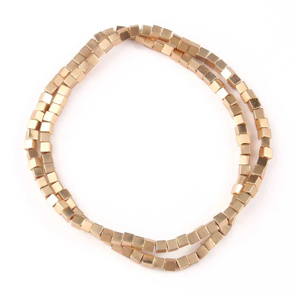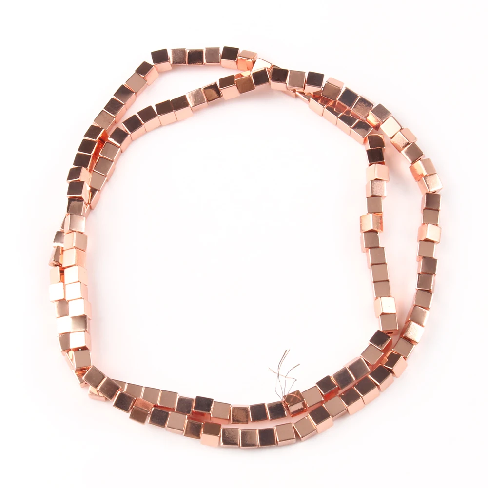 Квадратные бусины из матового камня, 18 К, розовое золото, серебро, гематитовые бусины россыпью для бисероплетения, Браслет сделай сам 15 дюймов
