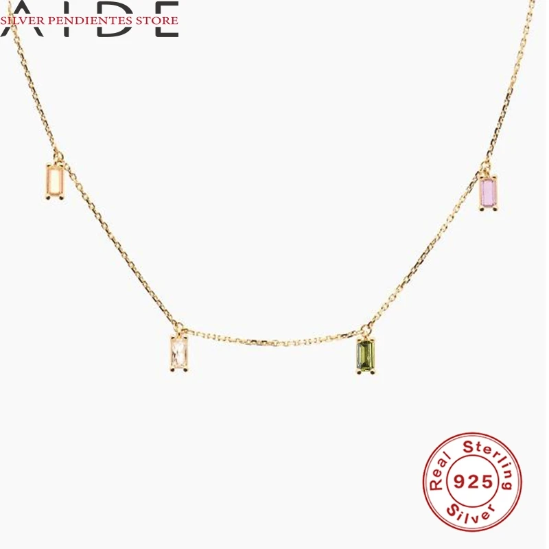 AIDE, серебро 925 пробы, цветное ожерелье для женщин, циркониевые подвески, цепь цветов радуги, колье, ожерелье, модные женские подарки, ювелирные украшения