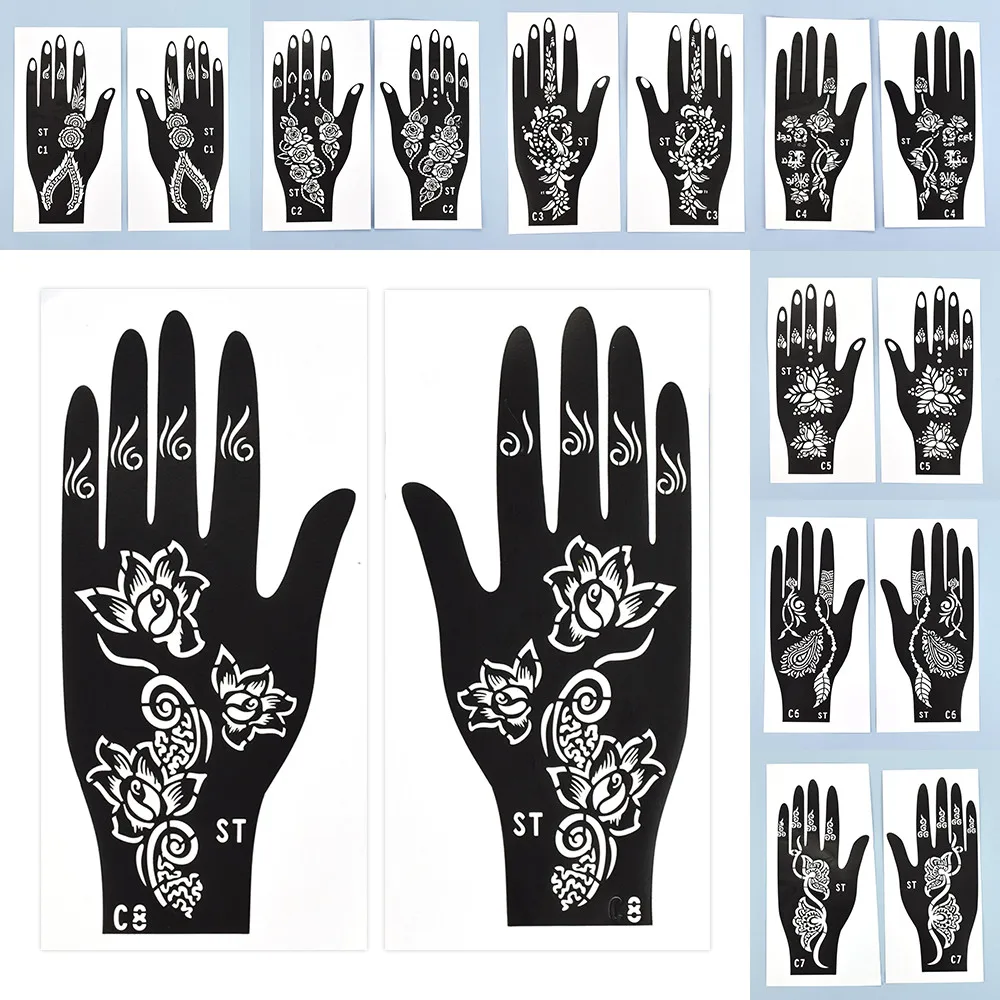 2 шт.компл. Временная фотография, временная ручная Татуировка, наклейка для боди-арта, полый шаблон для рисования, фотография, индийский цветок