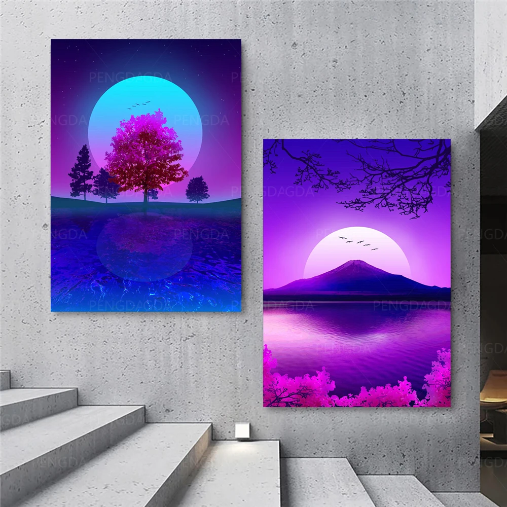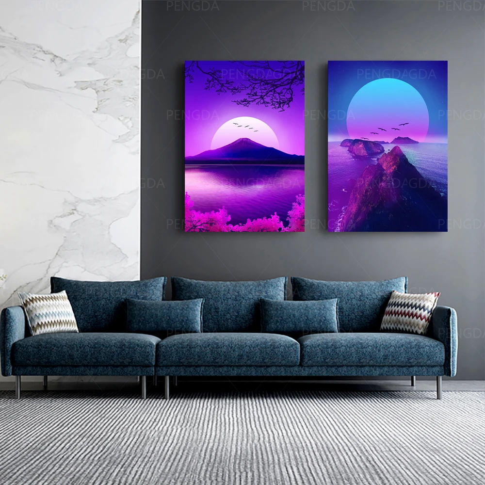 Настенная картина HD печатная модульная Япония Synthwave Fuji Холст Живопись Домашний декор для гостиной Пейзаж Плакат рамка картины