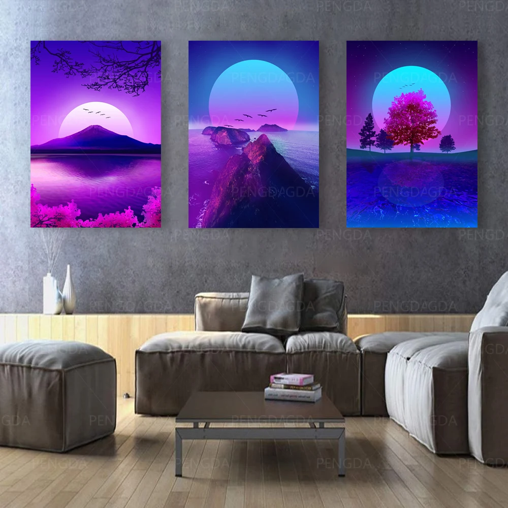Холст для украшения дома Vaporwave, настенный неоновый плакат, моду...