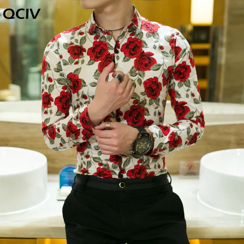 Осенняя Новая модная мужская рубашка, Повседневная рубашка на пуговицах с длинным рукавом для мужчин, рубашки с цветочным принтом розы для мужчин