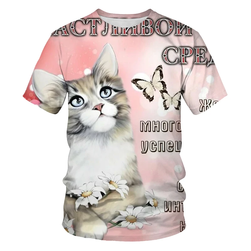 Футболки с 3D принтом кошки для мужчин и женщин, милые футболки с ж...