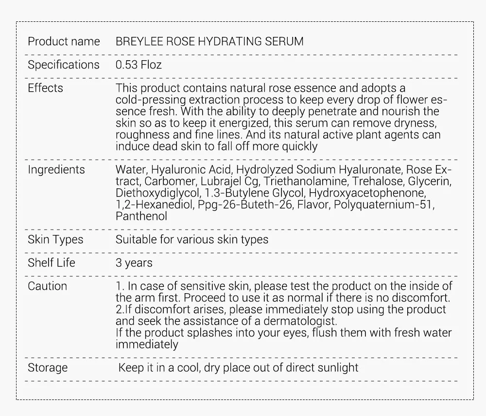 Увлажняющая сыворотка для лица BREYLEE Rose, глубокое питание, увла...