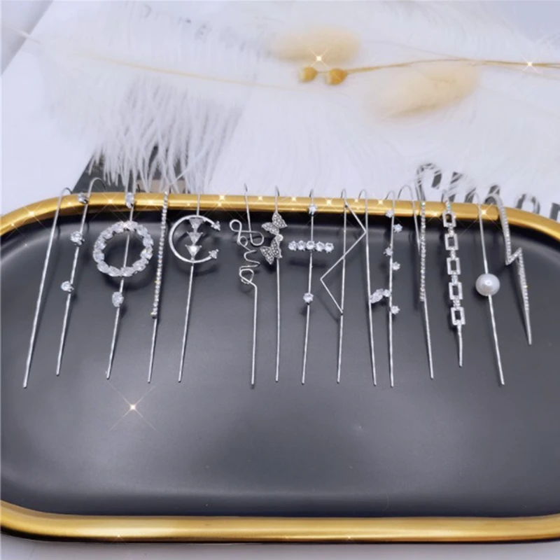 KSRA Винтажные серьги-гвоздики с гусеничным крючком с кристаллами д...