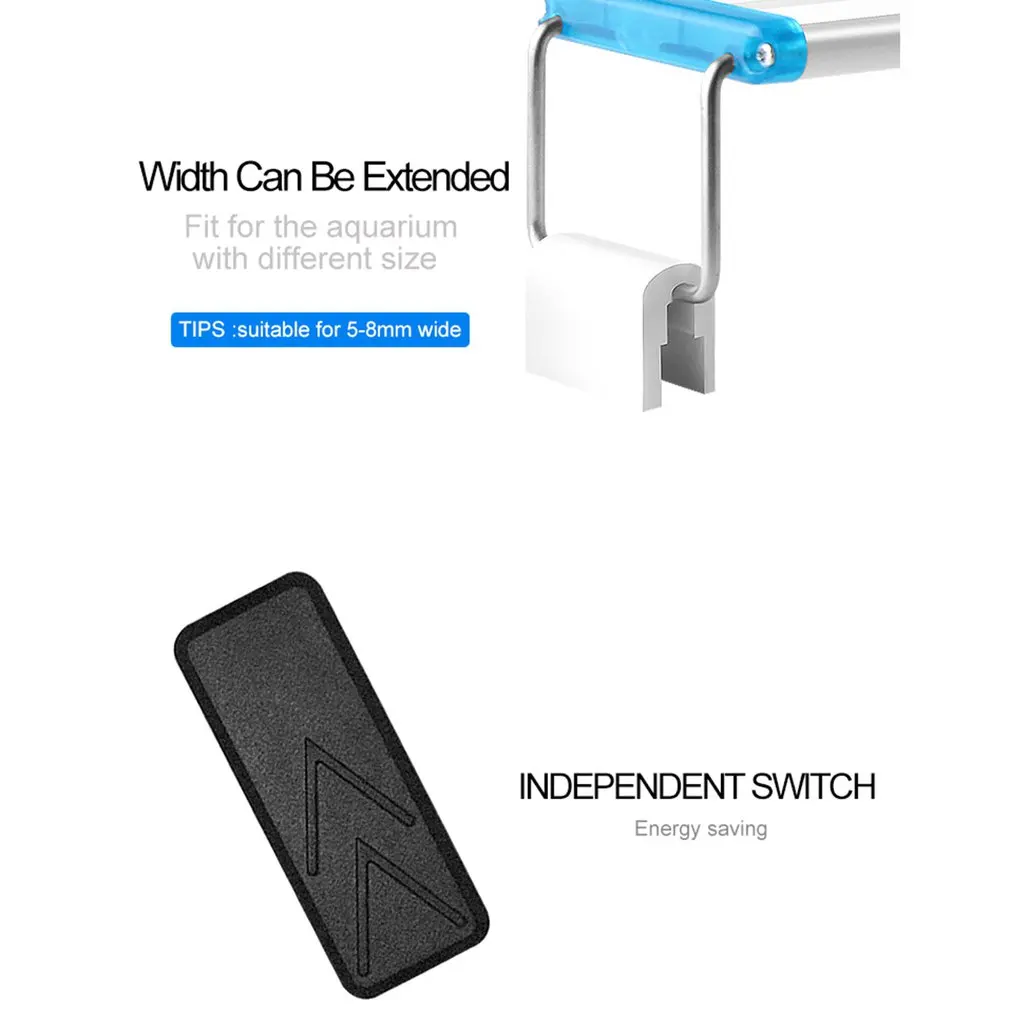 3. Регулируемый кронштейн: светильник для аквариума оснащен 2 металлическими и 2 пластиковыми монтажными кронштейнами, которые можно свободно расширять. Вы можете легко установить этот светодиодный светильник для аквариума на Большинство аквариумов с крышкой или без нее, с рамкой или без рамки.