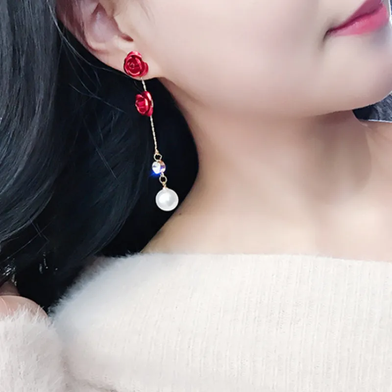 Серьги-подвески с лепестками роз женские, элегантные длинные серьги-кисточки с блестящим цирконием, Спиральные серьги-капли, Подарочная бижутерия, 2021