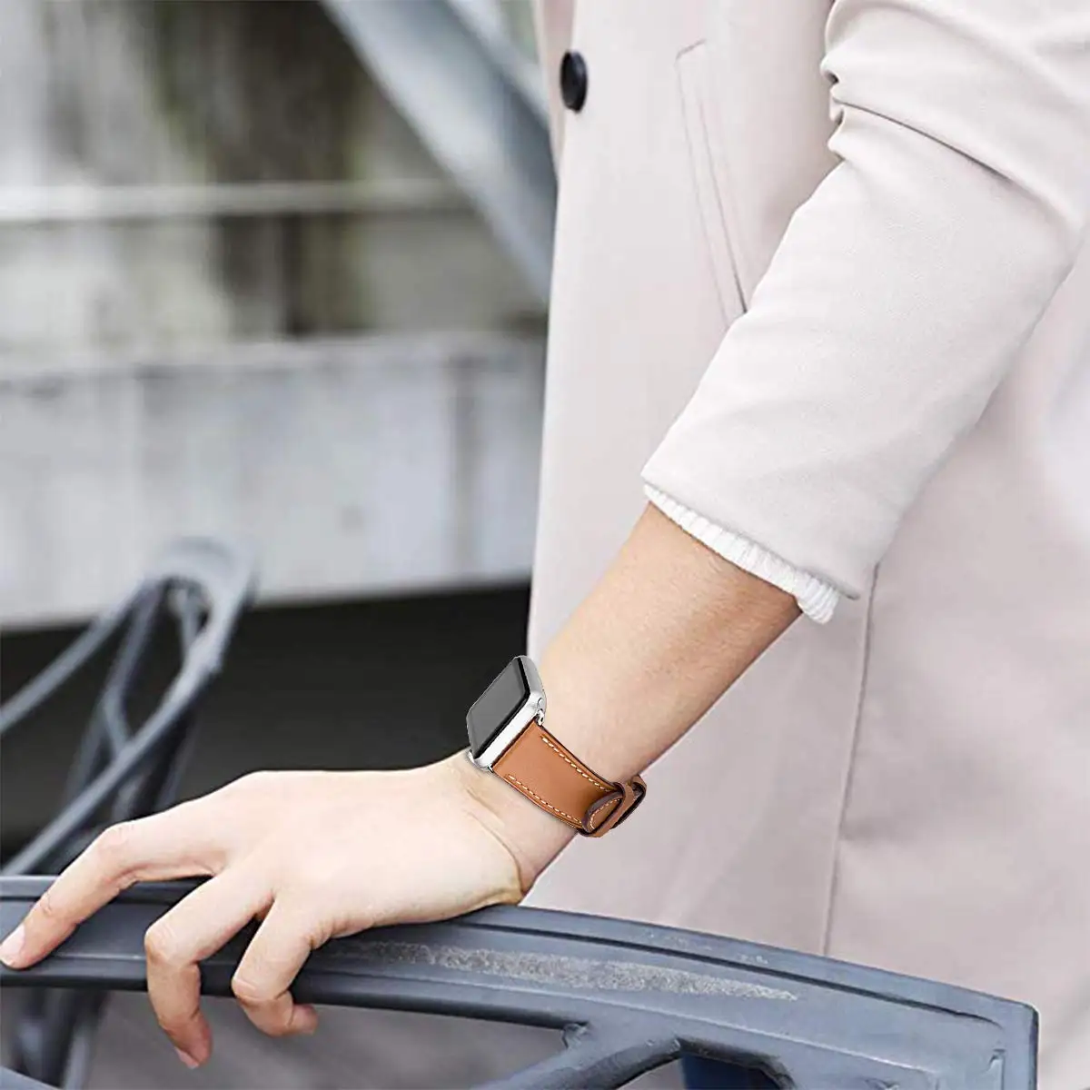 Кожаный ремешок для ремешка Apple watch 44 мм 40 мм 45 мм 41 мм 42 мм 38 мм 45 мм одинарныйдвойной тур Браслет iWatch serie 3 5 6 se 7