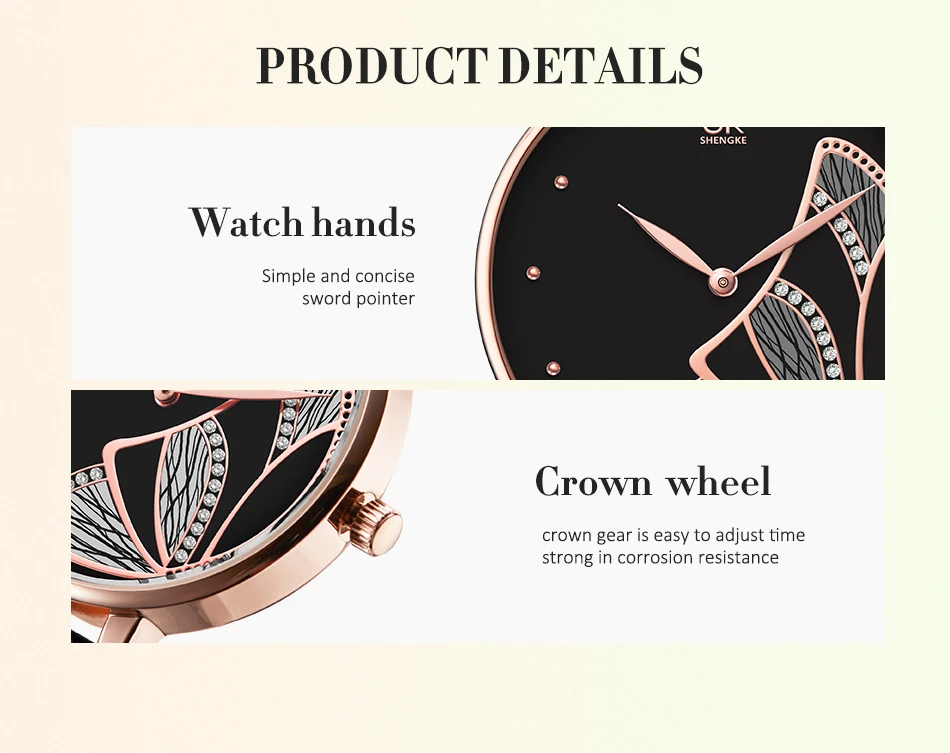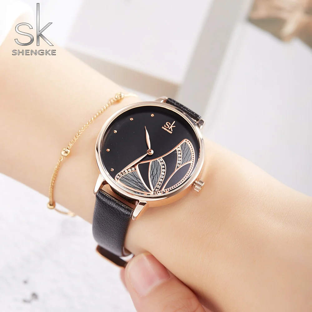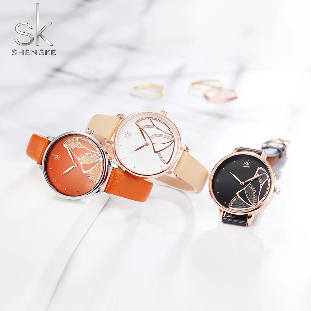 Часы наручные Shengke женские кварцевые, модные повседневные Роскошные брендовые, водонепроницаемые