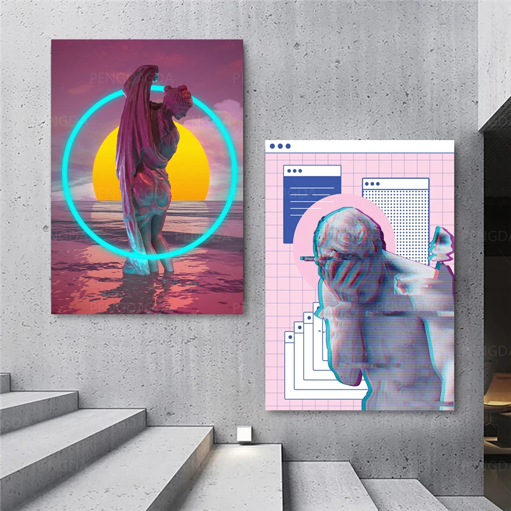 Плакат в стиле вейпорвейв с HD принтами, настенное искусство, украшение для дома, модульная статуя Винус каллипиджа, Картина на холсте, картины для гостиной