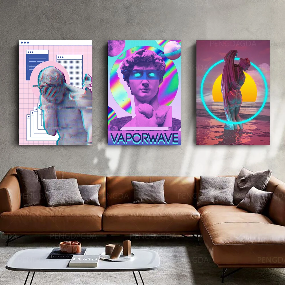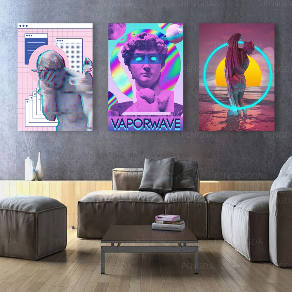 Холст для украшения дома Vaporwave, настенный неоновый плакат, моду...