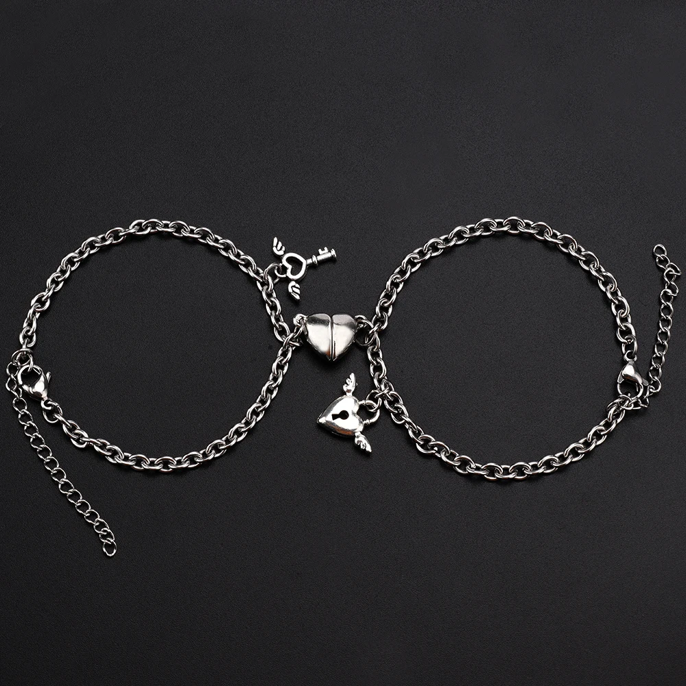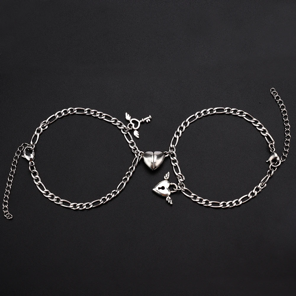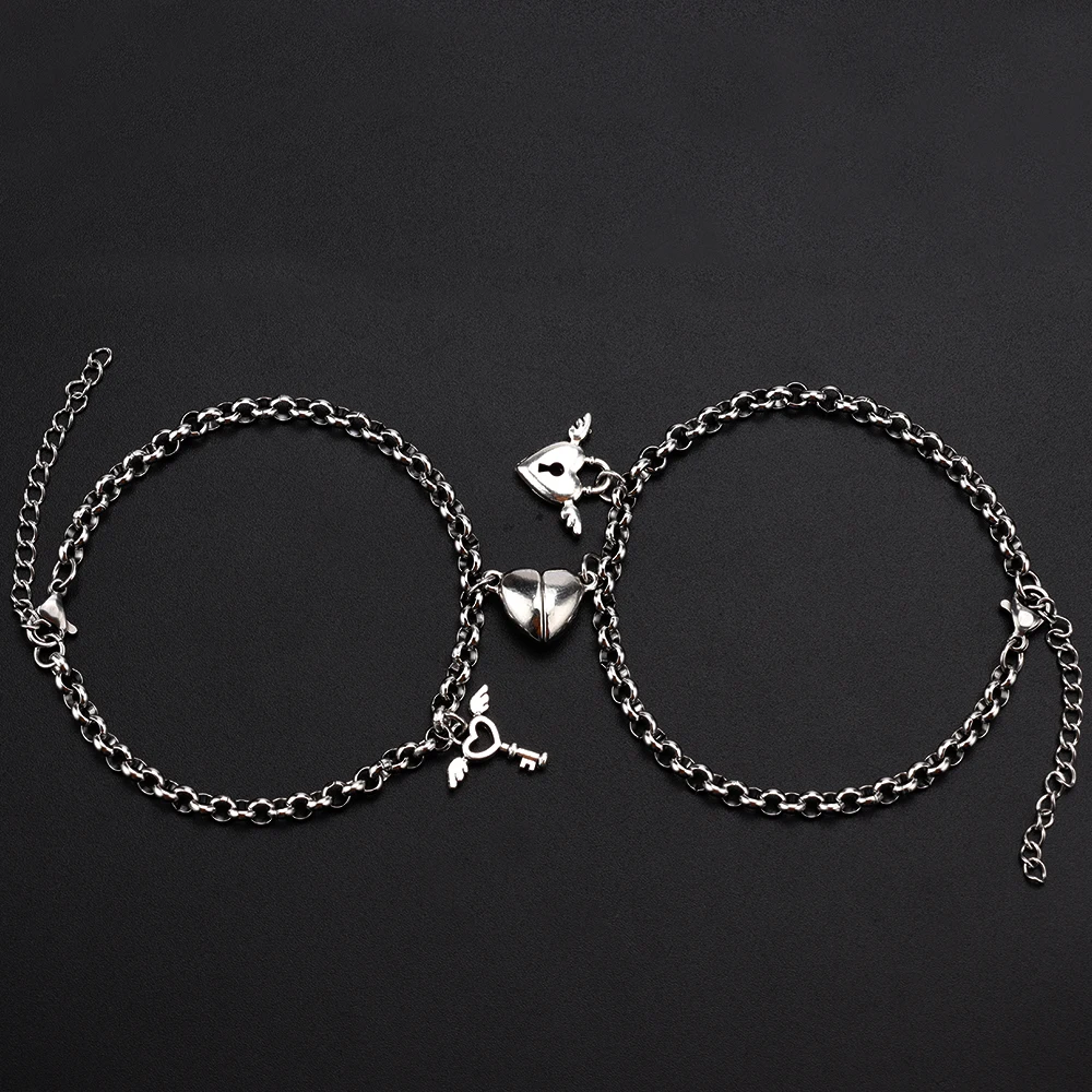 2 шт.компл., браслет в форме сердца, с магнитом, с замком для влюбленных ключей, ювелирные изделия, цепочка из нержавеющей стали, ожерелье, ювелирные изделия для женщин и мужчин