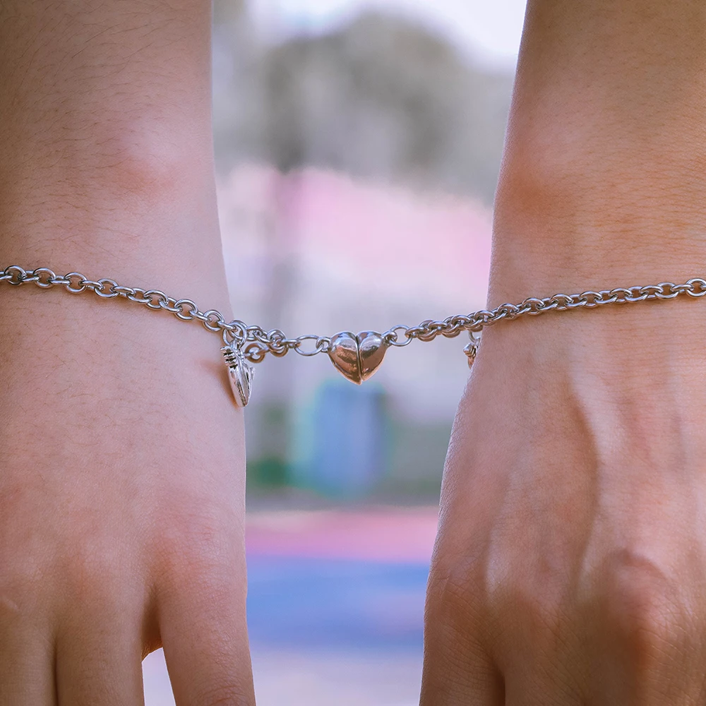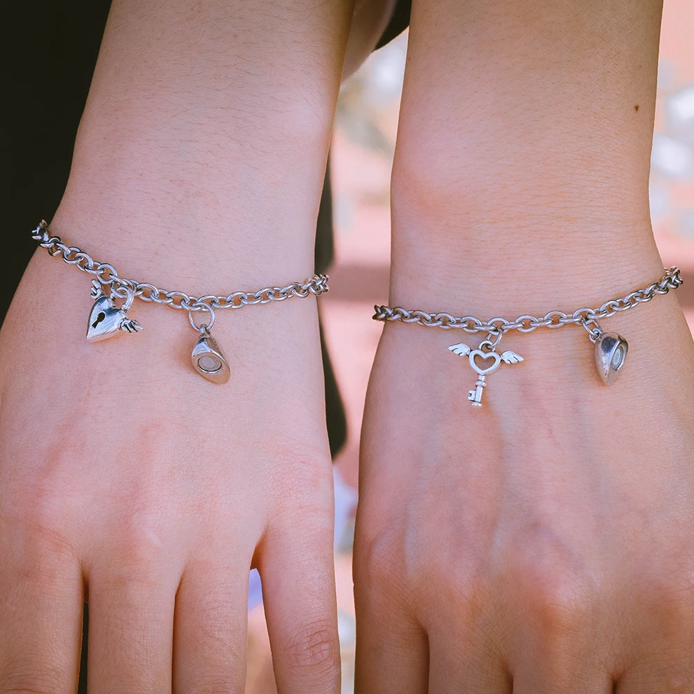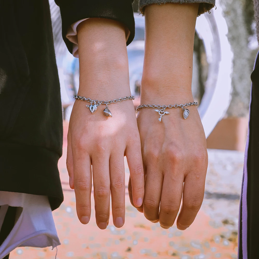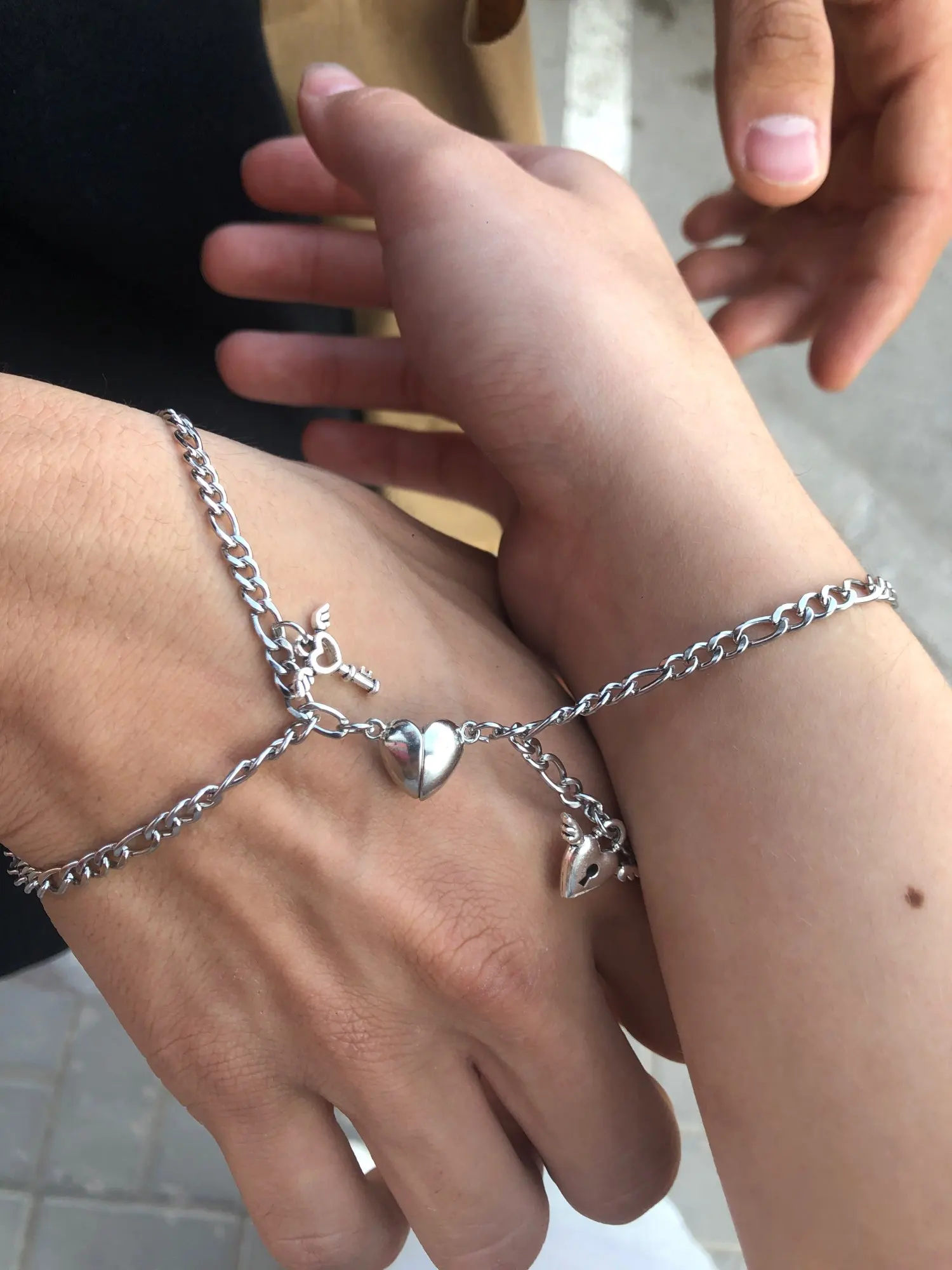 2 шт.компл., браслет в форме сердца, с магнитом, с замком для влюбленных ключей, ювелирные изделия, цепочка из нержавеющей стали, ожерелье, ювелирные изделия для женщин и мужчин