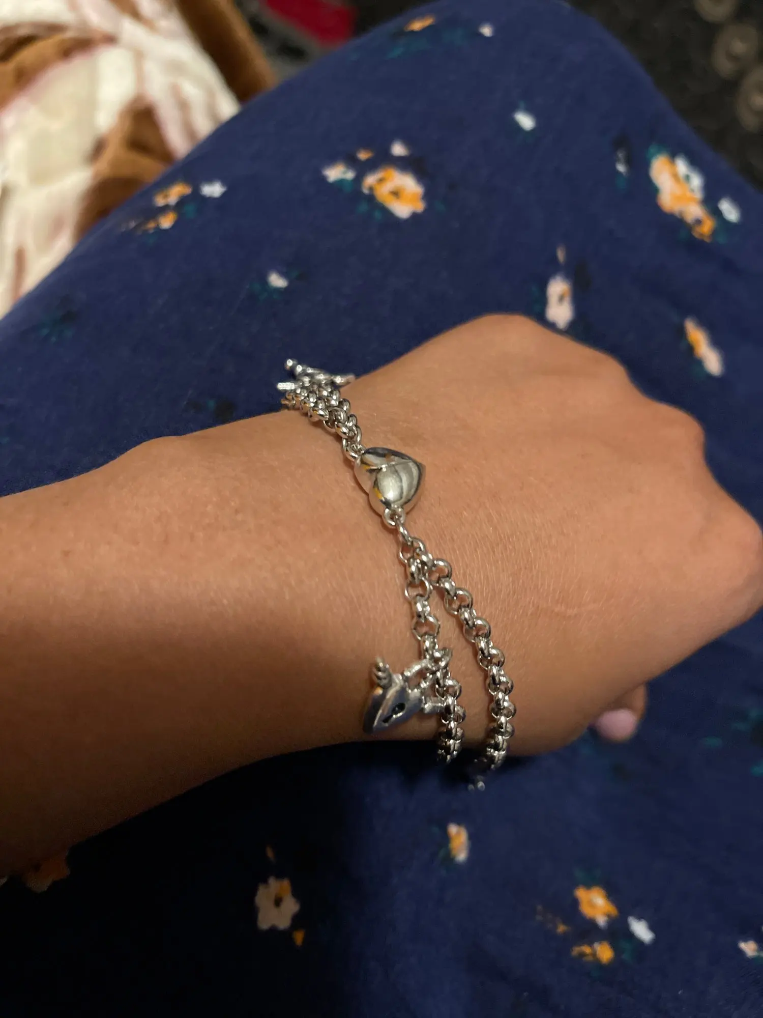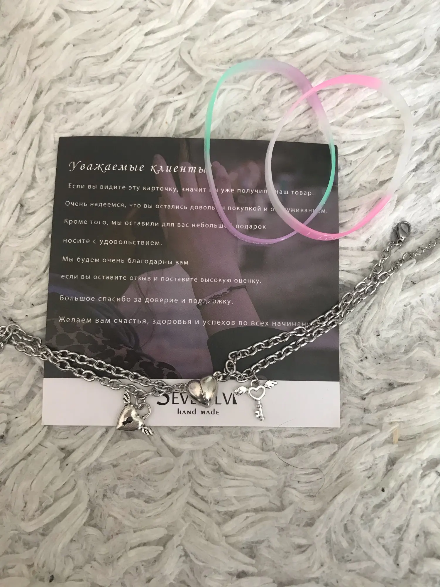 Очень милые парные браслетики. Быстро пришли, единственное, я немного перепутала цепочку, хотела другой формы, но эта форма, тоже очень красивая. Рекомендую всем заказывать, очень хороший продукт