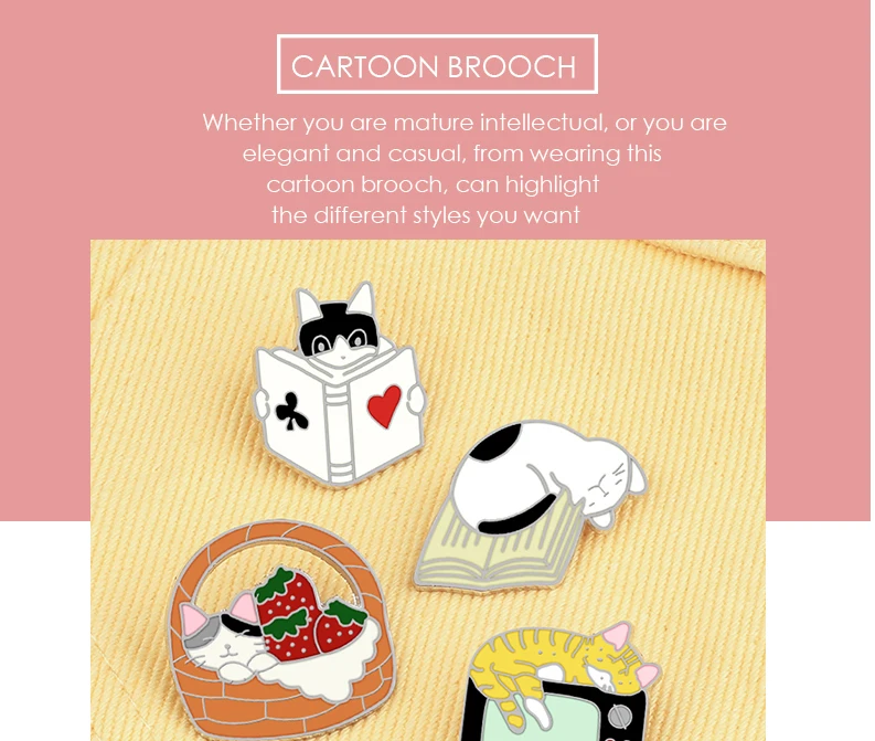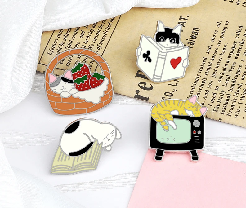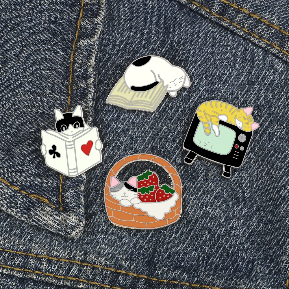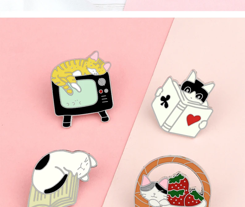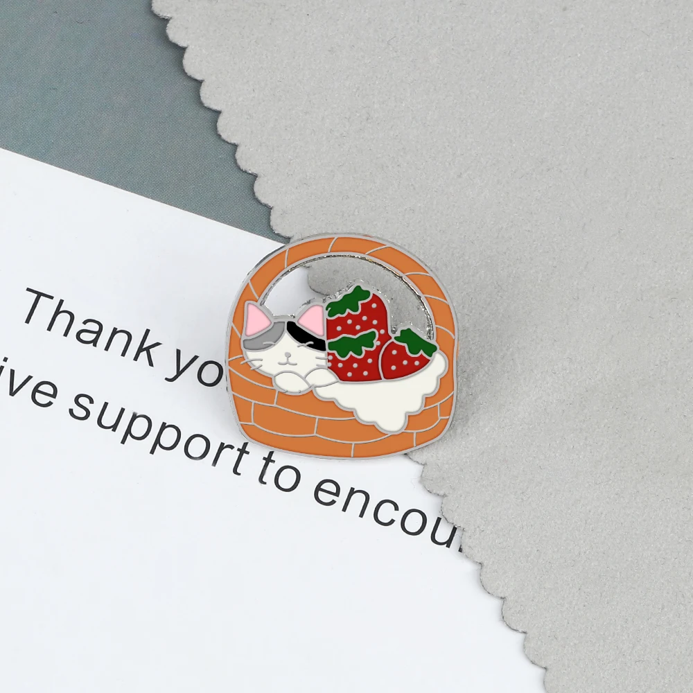 Брошка мультфильм с эмалью ленивый спящий Кот, корзина с клубникой эмалевые значки для пальто и лацканов, Ювелирное Украшение для детей