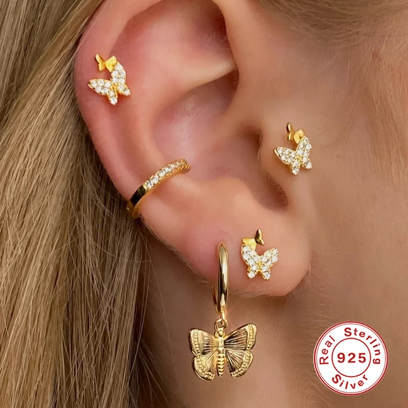 Женские корейские серьги-гвоздики CANNER, роскошные серьги золотого цвета с цирконом и бабочкой и кристаллами, 925