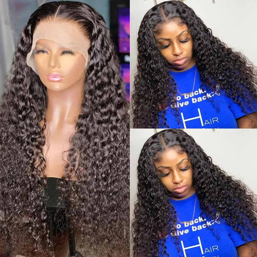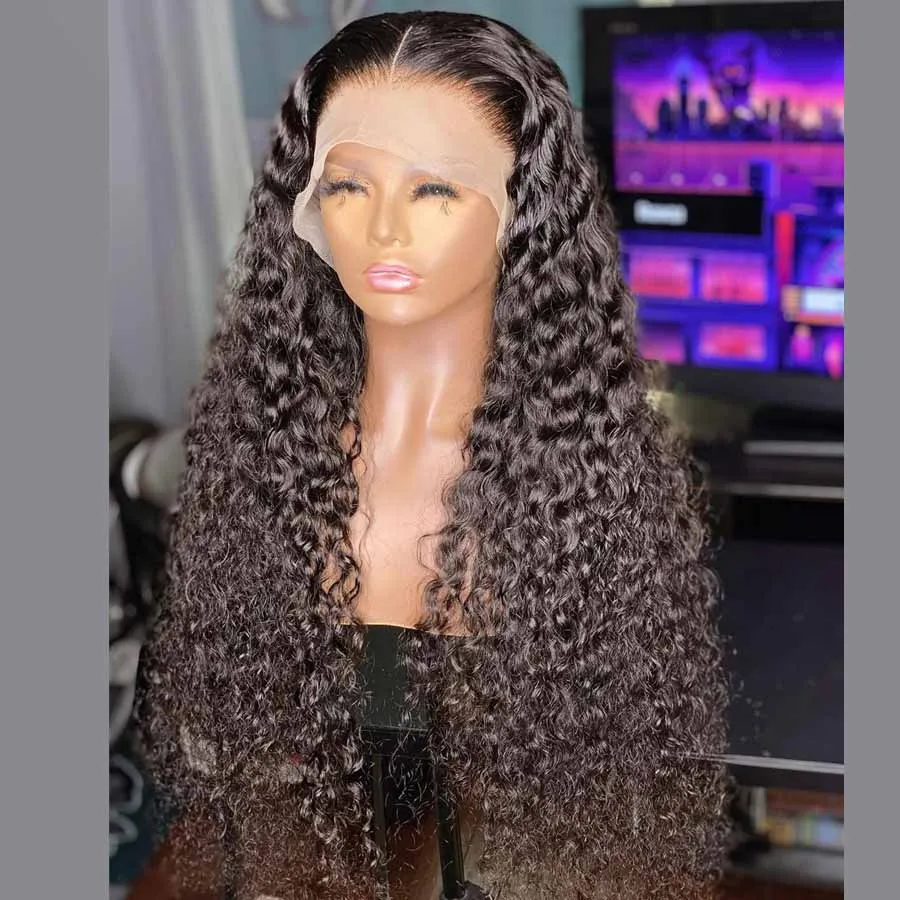 24 дюйма черный цвет длинный кудрявый бесклеевой прозрачный кружевной передний парик Синтетический для модных женщин с Babyhair ежедневная одежда парик