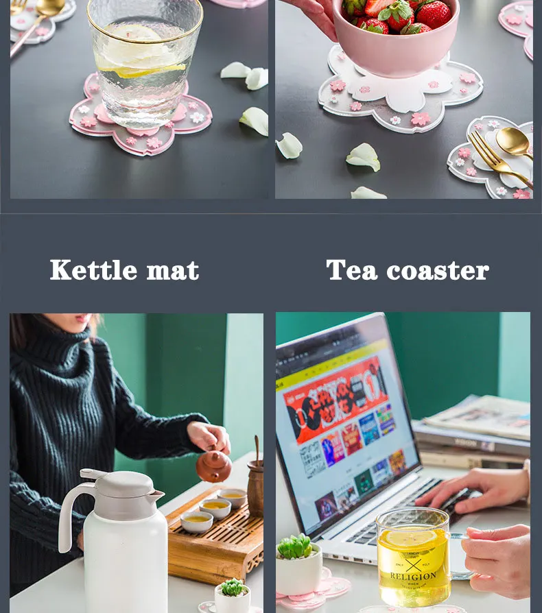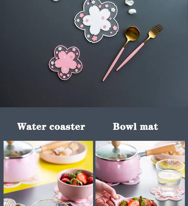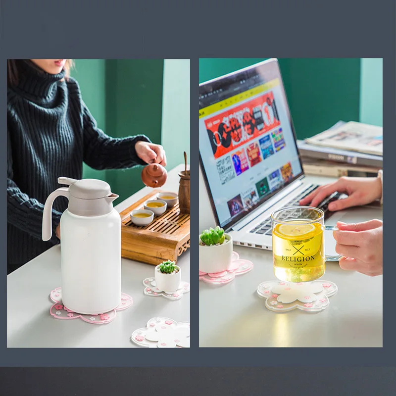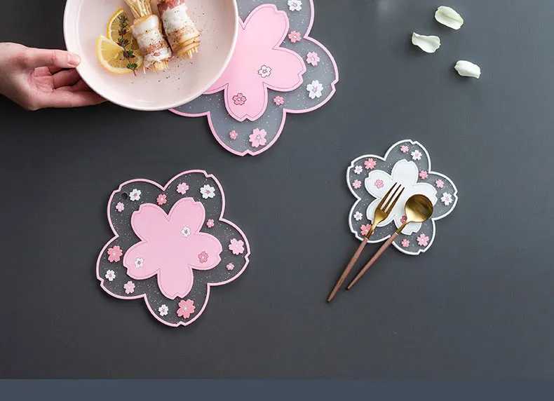 Термоизоляционный Набор ковриков на стол в японском стиле с цветком вишни, 2 шт., нескользящая чашка для чая, молока, кружка, подставка для кофейных чашек, коврик для посуды