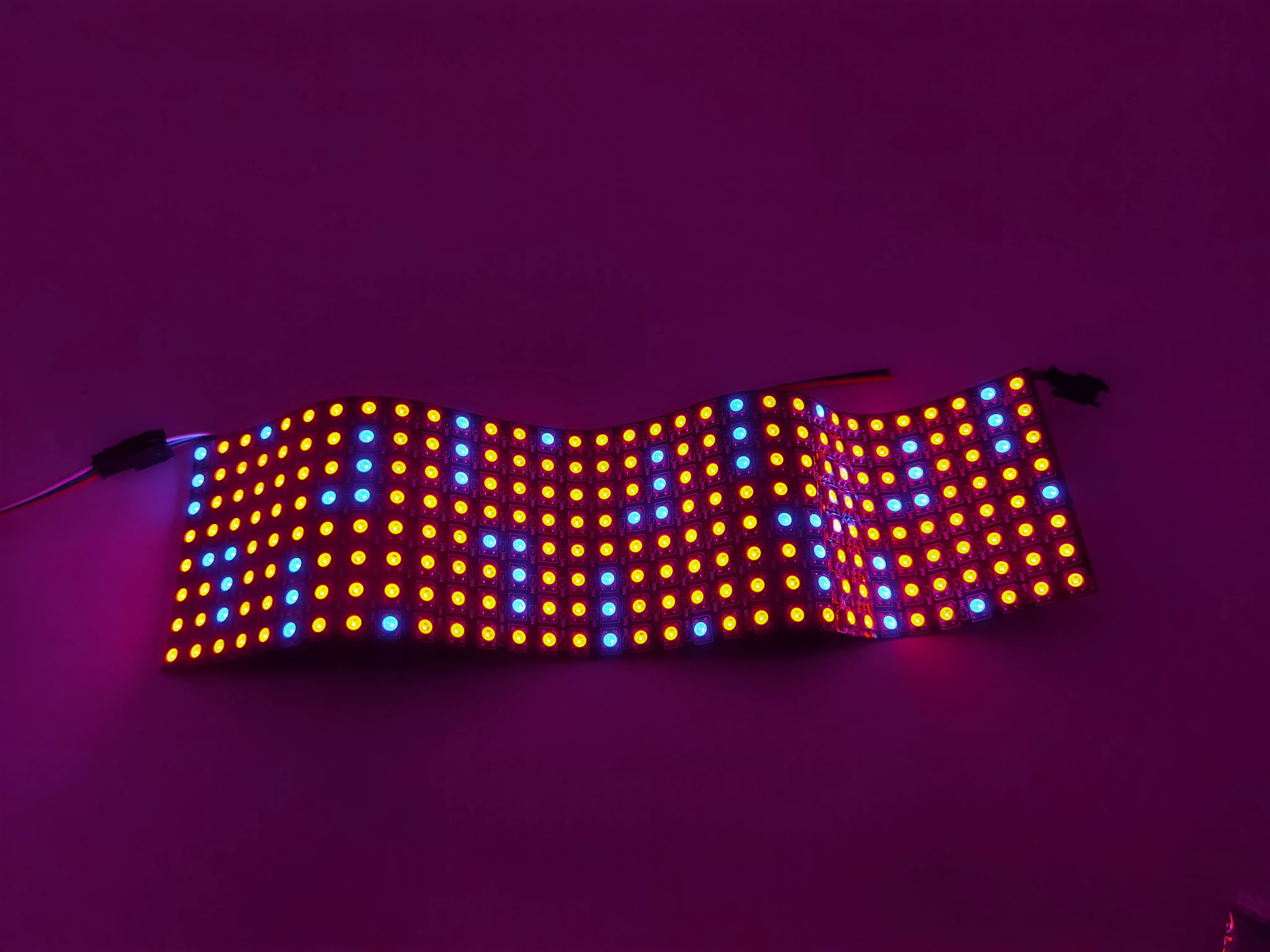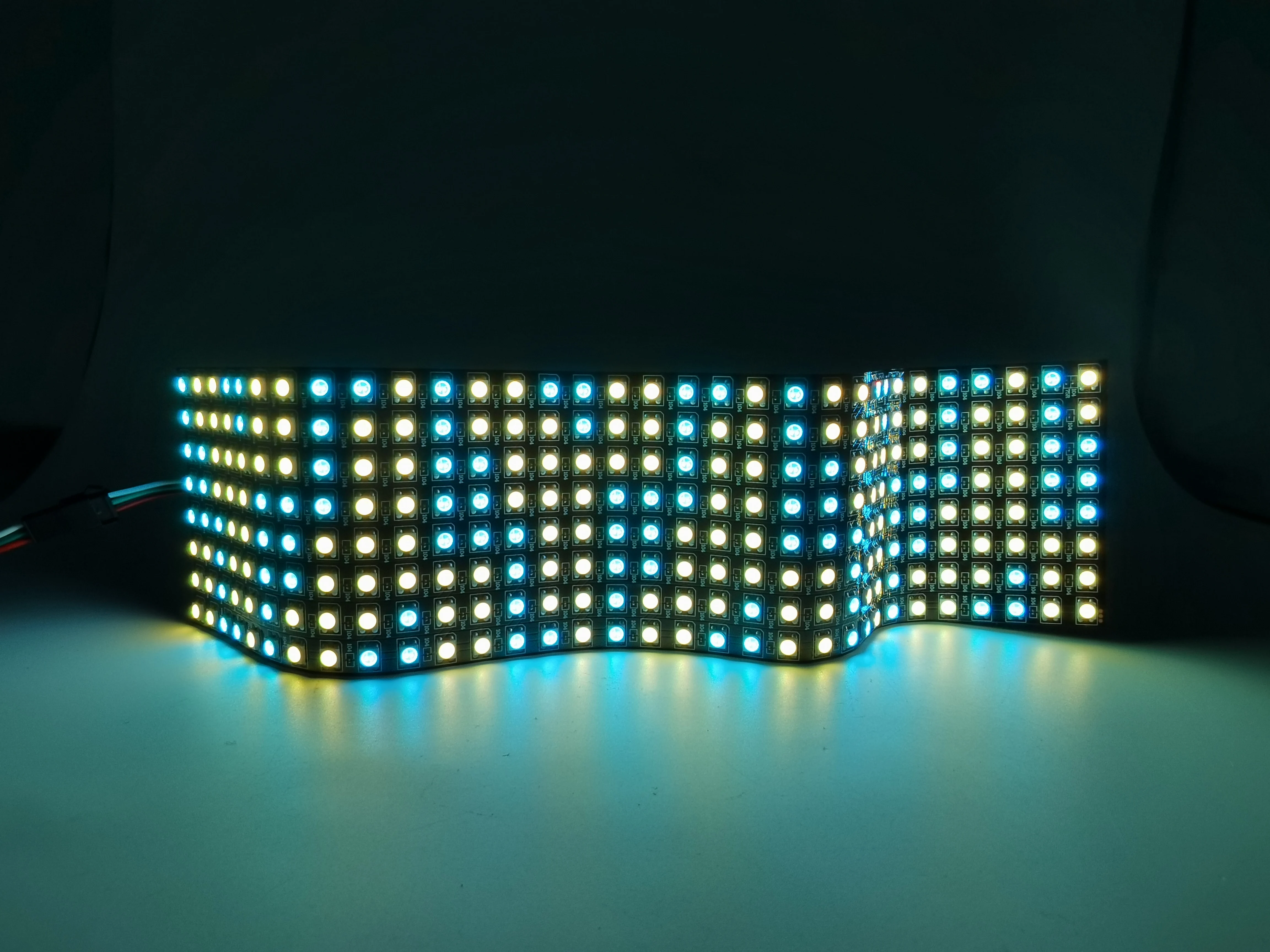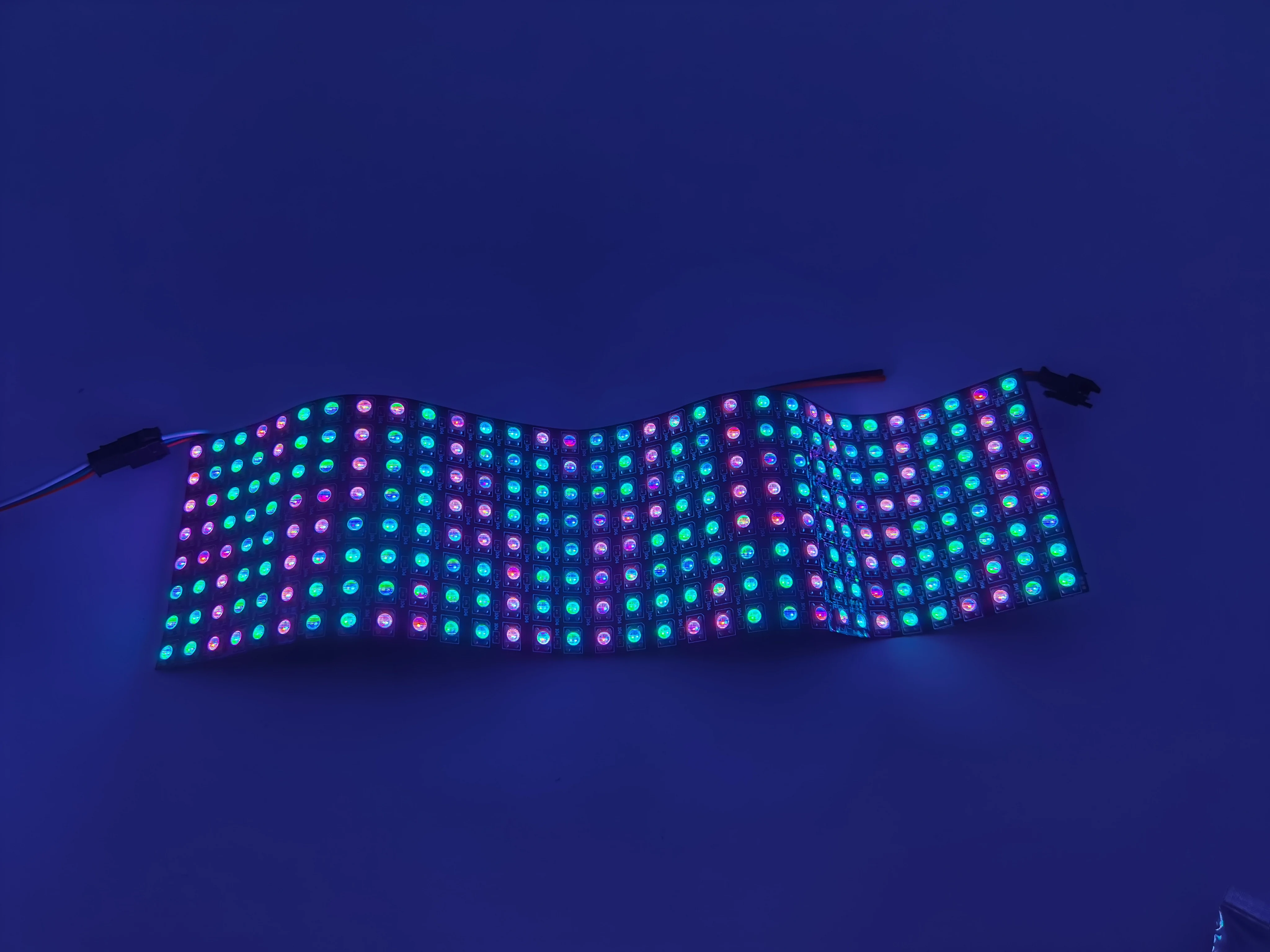 Изготовление светодиодного экрана, светодиодной стены, рекламной доски. Применяется в гостиницах, KTV, барах, рекламных компаниях, отделочных компаниях, городском освещении, развлекательных и развлекательных местах.1. Цвет излучения: пиксель RGB , IC WS28122. Рабочее напряжение: DC5V3. Мощность: 0,3 W/pixel4. Уровень водонепроницаемости: не водонепроницаемый5. Режим работы: внешний контроллер Arduino совместим.6. Подключение: VCC: красный; GND: черный/белый; DAT: синий