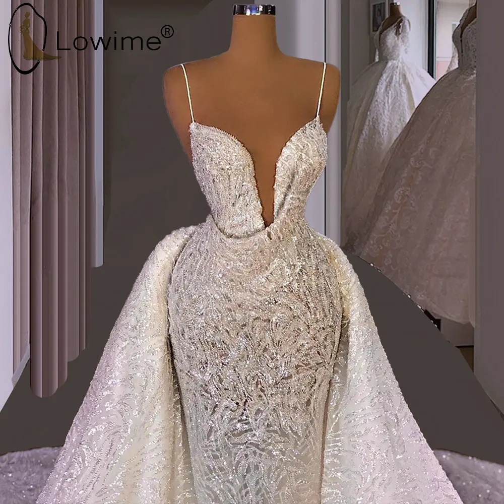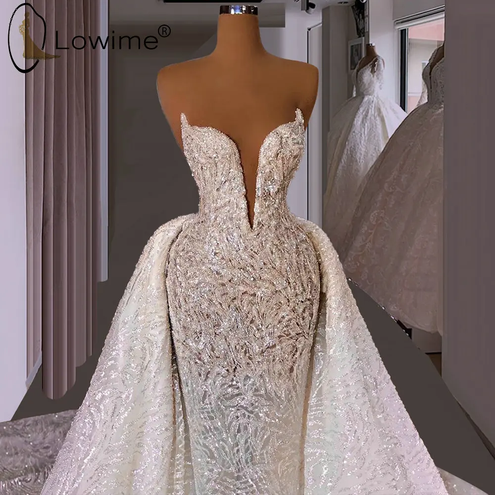 Свадебные платья цвета слоновой кости с юбкой годе из Дубая со съемным длинным шлейфом, сексуальные свадебные платья, по индивидуальному заказу, размера плюс