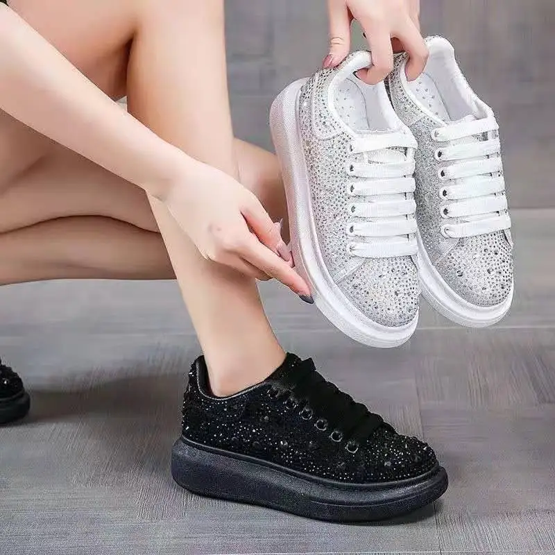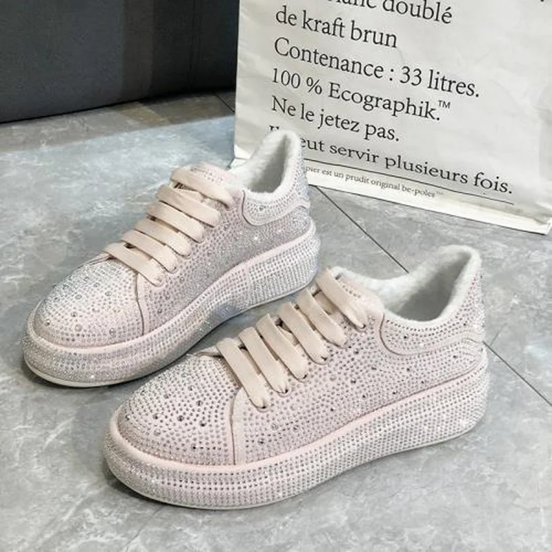 Женские кроссовки на платформе, полностью алмазные, спортивная обувь на платформе, белые, блестящие, стразы, 40 осень-зима