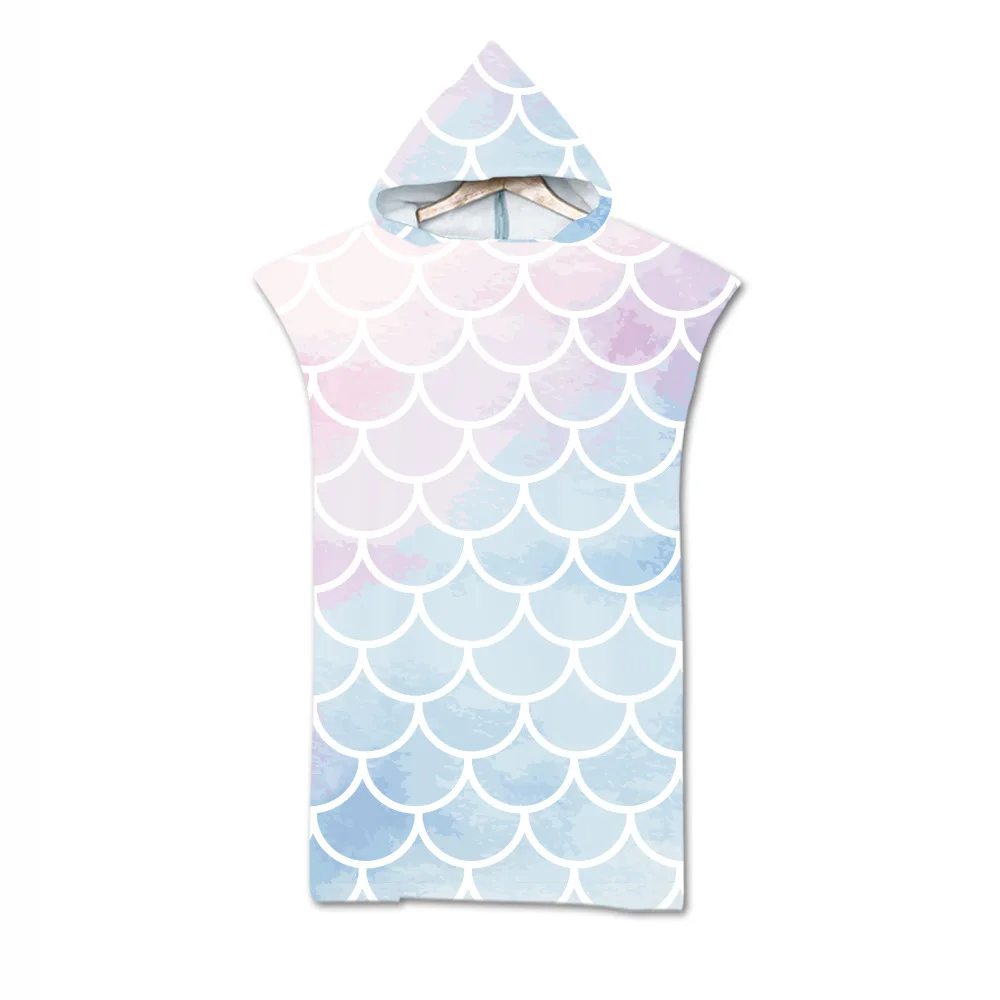 Халат с принтом рыбьей чешуи из микрофибры, банное полотенце, пончо...