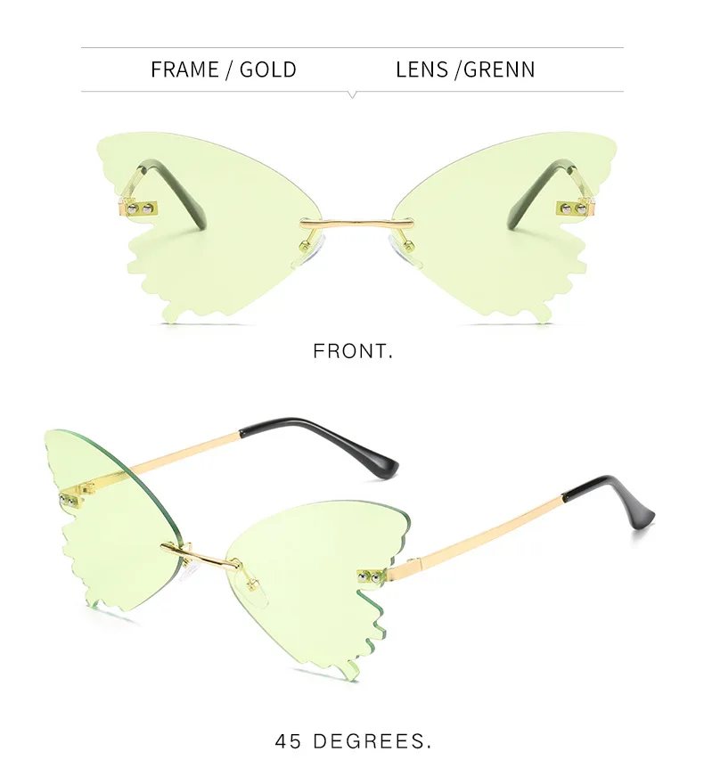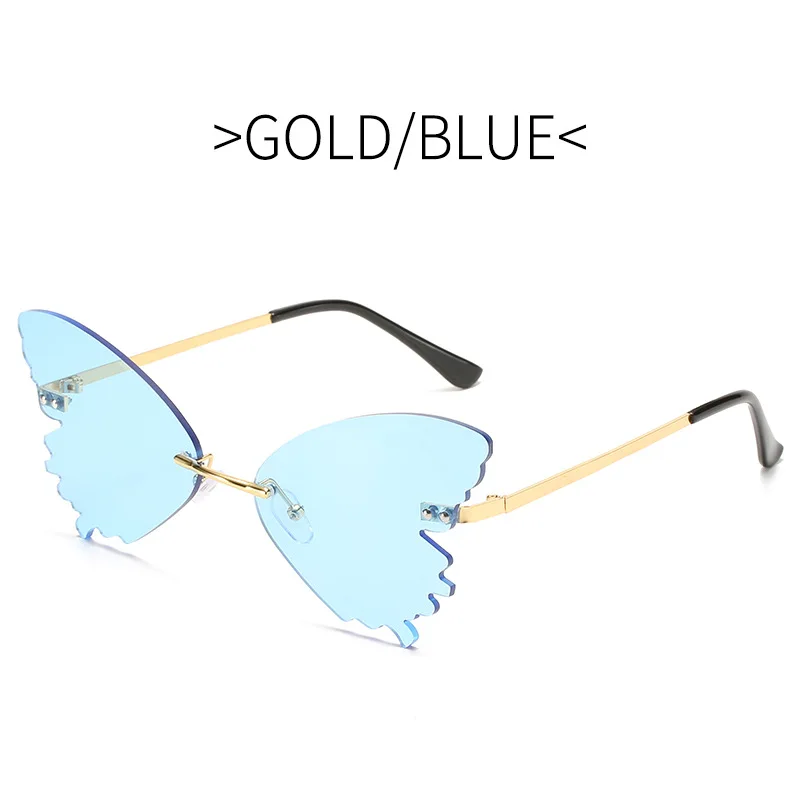 Модные женские солнцезащитные очки без оправы в стиле ретро со стрекозой и крыльями, женские праздничные очки с желтыми градиентными линзами UV400