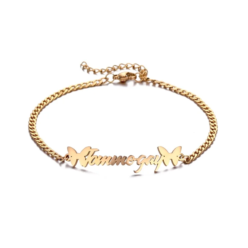 Индивидуальный именной золотистый браслет, нержавеющая сталь, ручна...