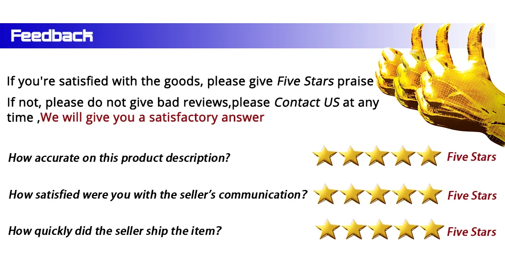 4. Мы рады помочь им решить любую проблему, пожалуйста, свяжитесь с нами, прежде чем давать нам негативные отзывы.