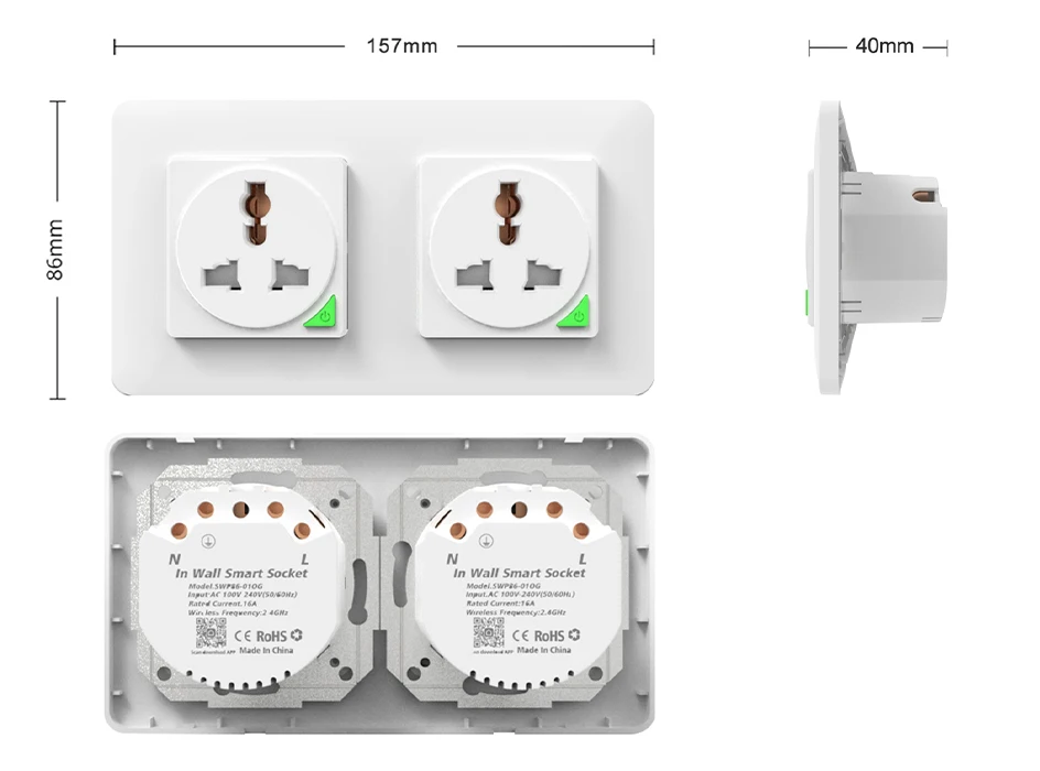 Умная светильник енная розетка Tuya с Wi-Fi, выключатель со съемным беспроводным управлением через приложение, настенная розетка европейского и британского стандарта, Alexa, Google Home