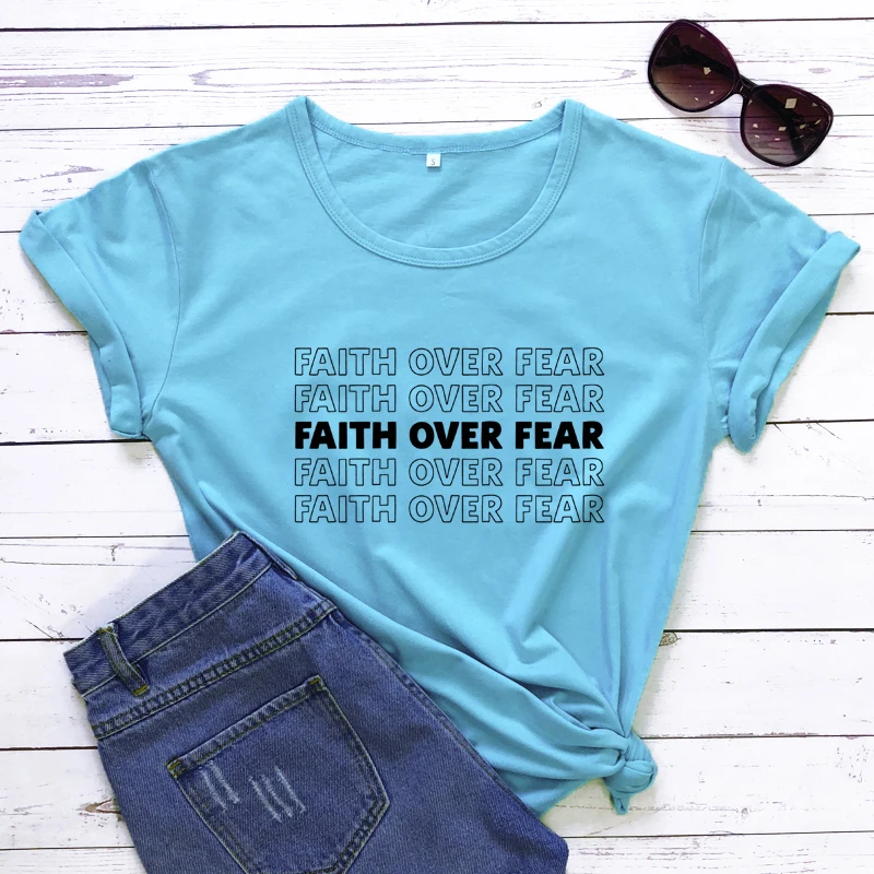 Faith Over Fear футболка для христианина религия одежда для женщин вера рубашка Графический бесстрашный слоган Винтаж гранж топы девушки тройникиUSD 9,30/Шт.