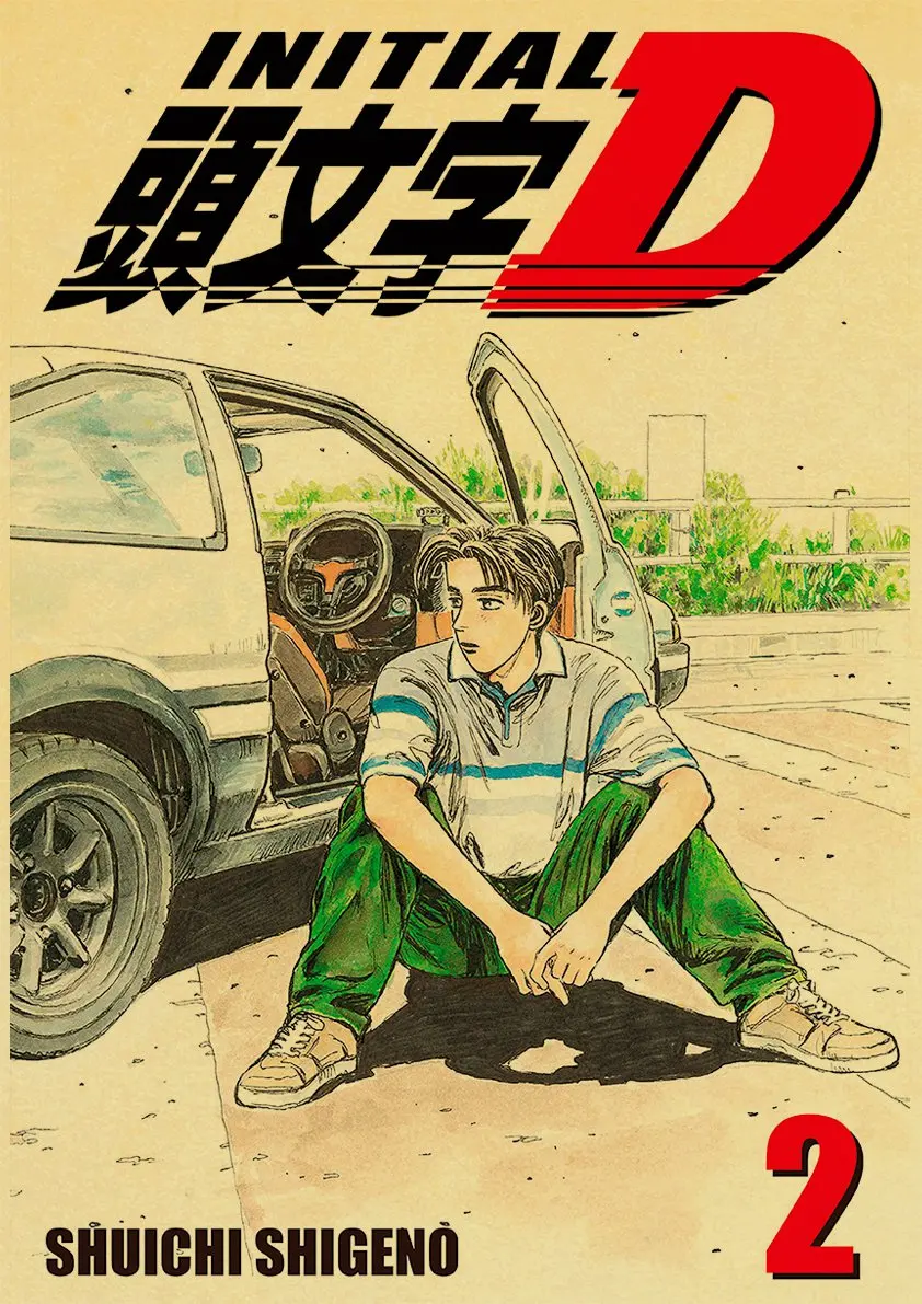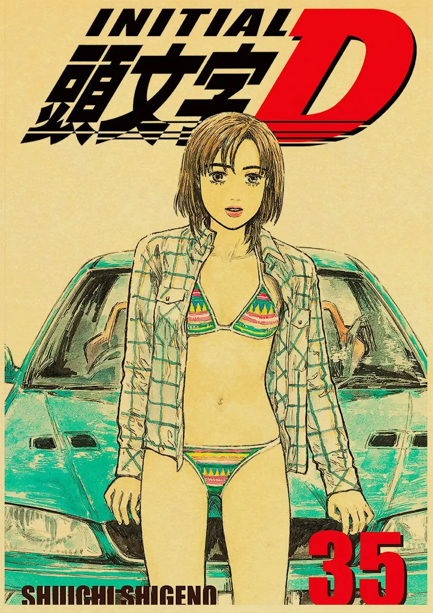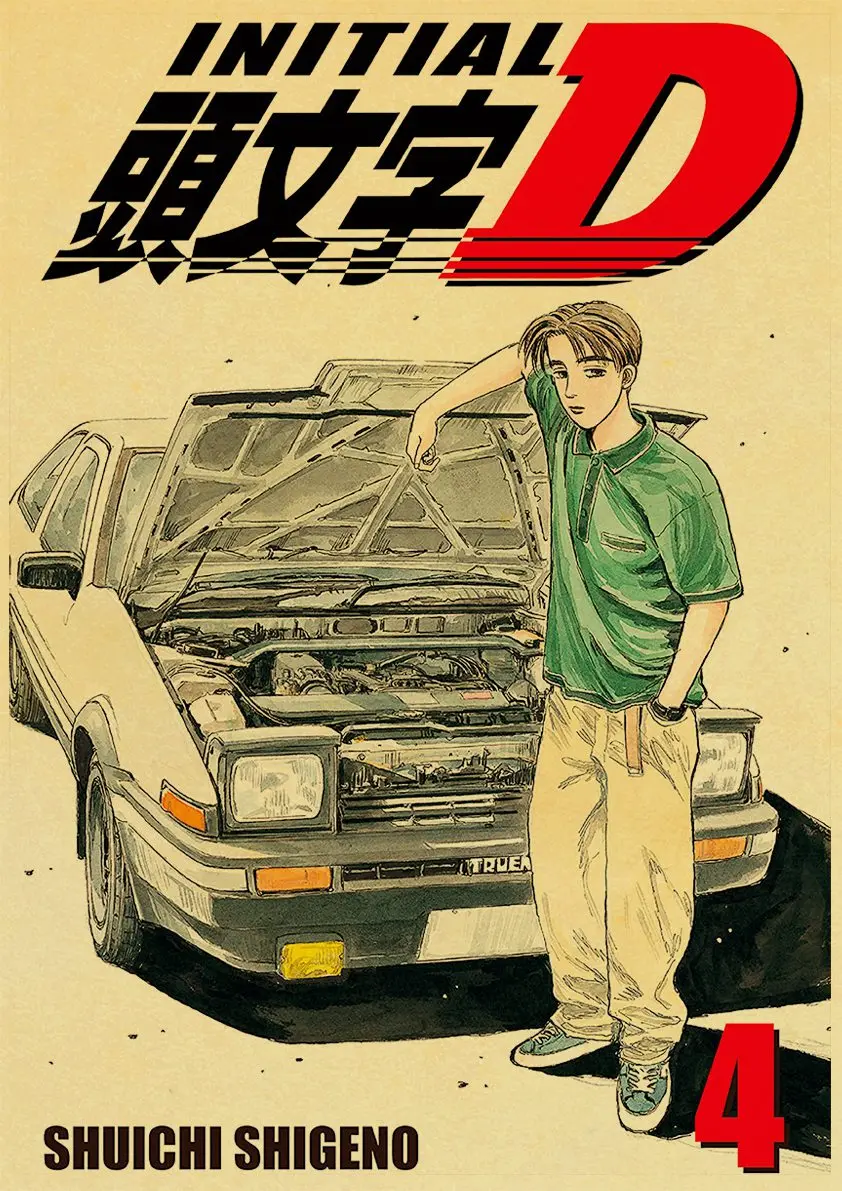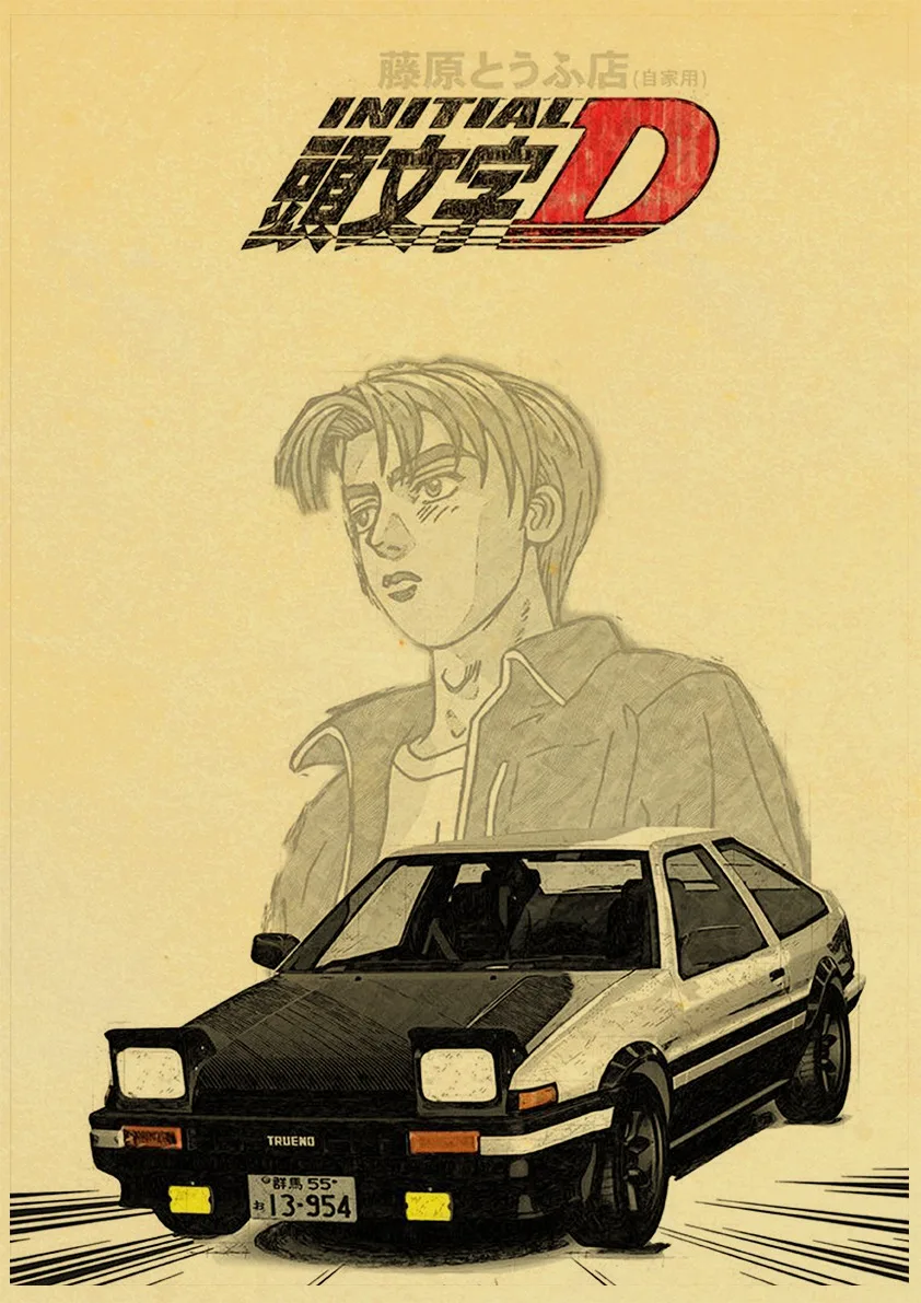 Японские гоночные аниме постеры с инициалами, коллекционные постеры для фанатов, художественная живопись, Декор для дома, магазина, Ретро наклейки на стену
