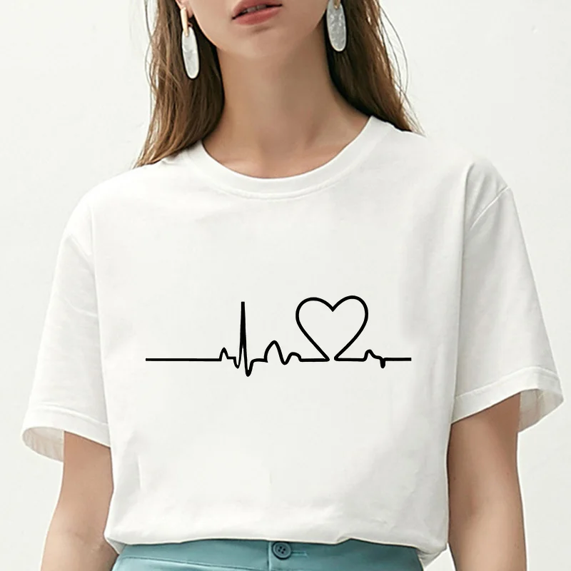 Футболка женская с изображением пульса, тонкий белый топ с принтом сердцебиения, модная рубашка в стиле Харадзюку, одежда на лето