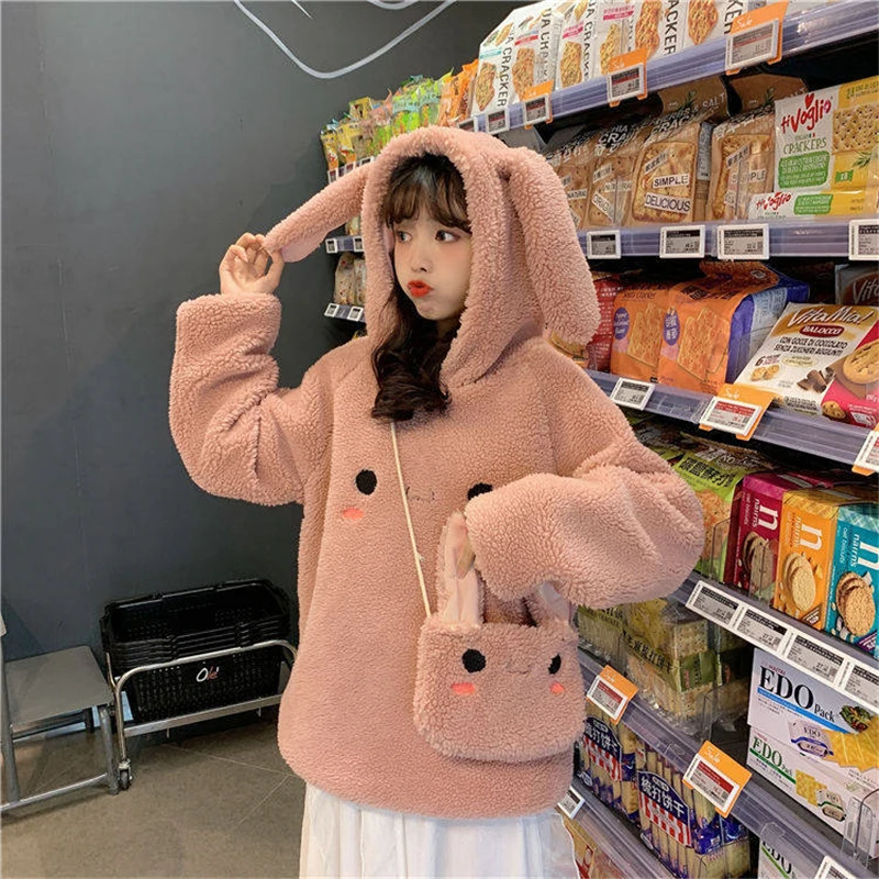 Милые толстовки с кроличьими ушками для женщин, Теплый Женский свит...