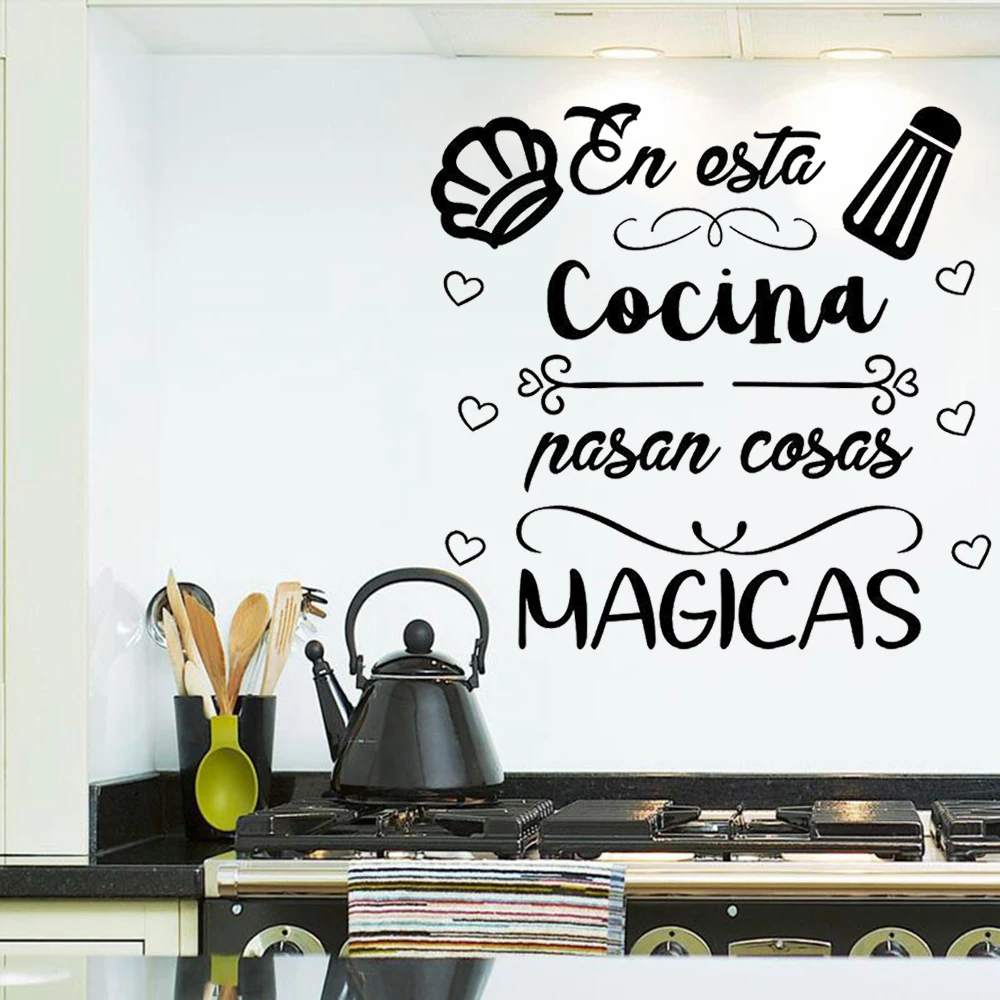 Наклейки на стену с надписью En Esta Cocina Nasan Things Magicas, декоративные виниловые наклейки с испанскими мотивами для кухни, декоративный постер RU2035