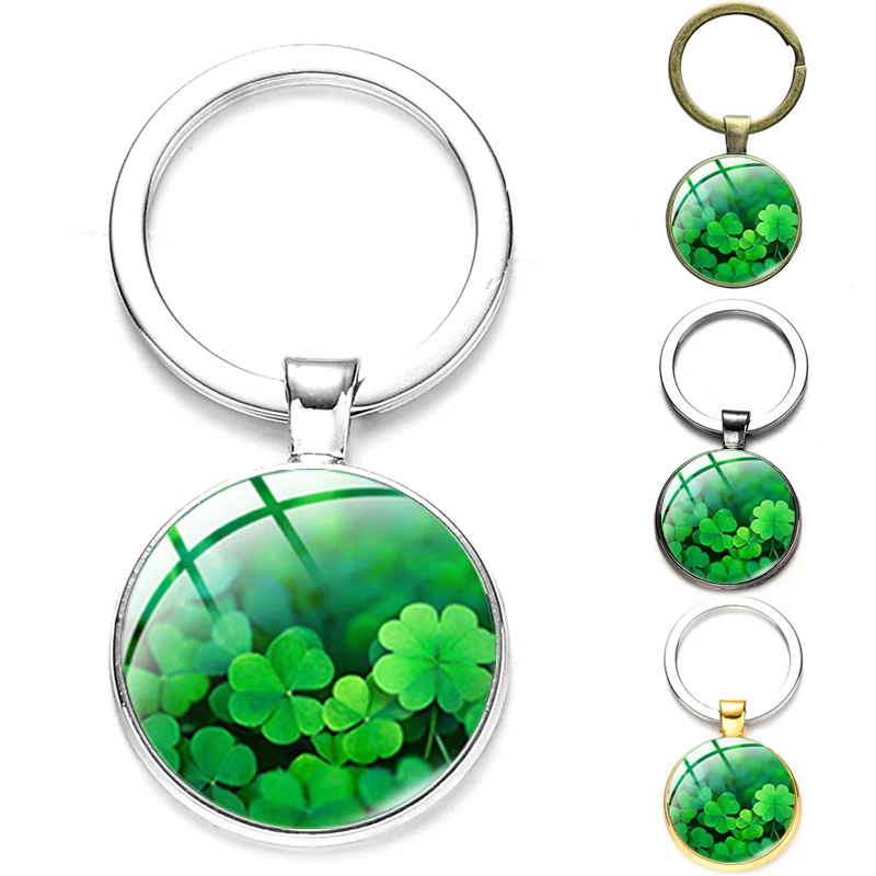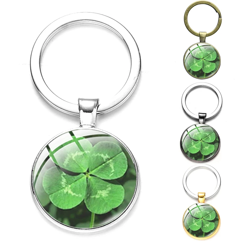 Новинка, брелок для ключей из четырехлистного стекла, клевер, металлический кабошон, автомобильный брелок, счастливое ювелирное изделие, реальный подарок для женщин и мужчин, аксессуары, Прямая поставка