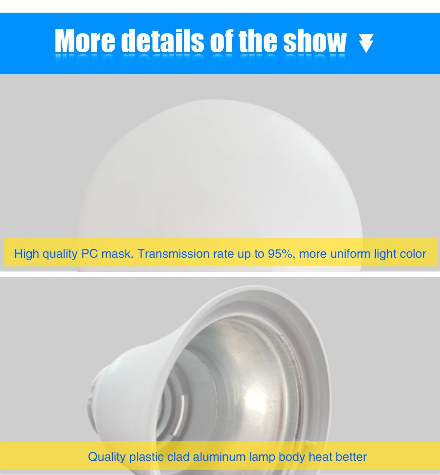 Описание продукта: Эта Алюминиевая СВЕТОДИОДНАЯ лампа хорошо подходит для замены лампы для освещения dow, таких как чтение, гостиная/спальня и т. Д. Мы предлагаем холодный белый и теплый белый. Название товара: светодиодная лампочка, светодиодная лампа Мощность: 3 Вт 6 Вт 9 Вт 12 Вт 15 Вт 18 Вт 21 Вт Напряжение: 220 В переменного тока, 230 В, 240 В Разъем: E27 Модель светодиодного чипа: SMD2835 Гарантия: 2 года Индекс цветопередачи: Ra80 Цветовая температура: холодный белый 6000-6500K, теплый белый 2700-3200K Уважаемые покупатели, пожалуйста, обратите внимание: Потому что цена очень низкая, поэтому Светодиодная лампа не поставляется в розничной коробке, если вы хотите розничную коробку, пожалуйста, обратитесь к нам за помощью, прежде чем оформить заказ.