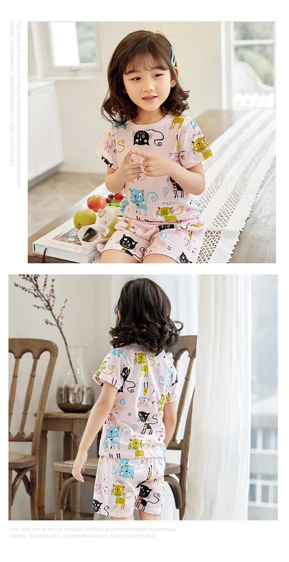 Детский пижамный комплект, домашняя одежда с мультяшными динозаврами, машинками, единорогом, комплекты одежды для маленьких мальчиков и девочек, летняя детская пижама, пижамы
