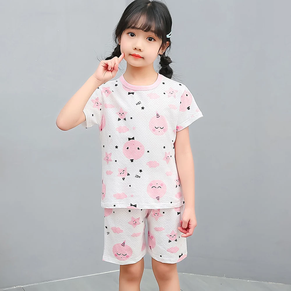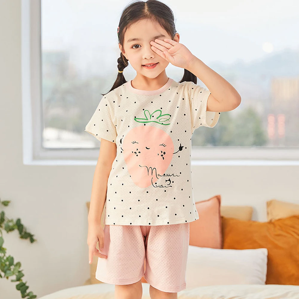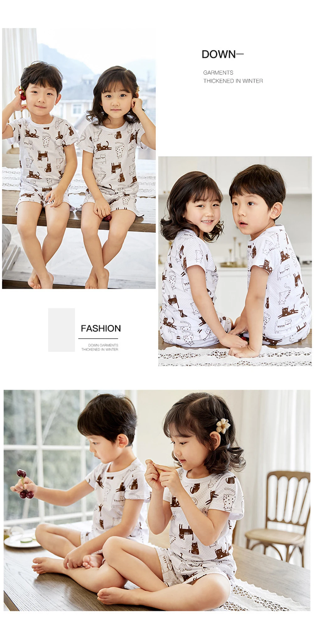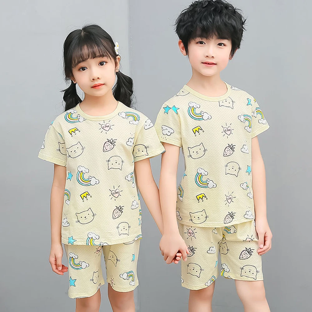 Пижама для мальчиков и девочек, хлопковая, летняя, с коротким рукавом