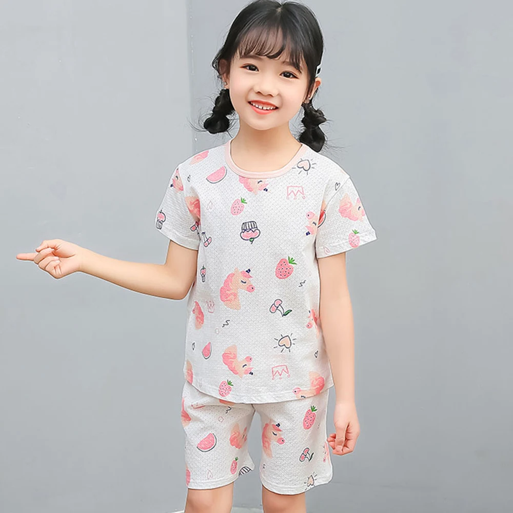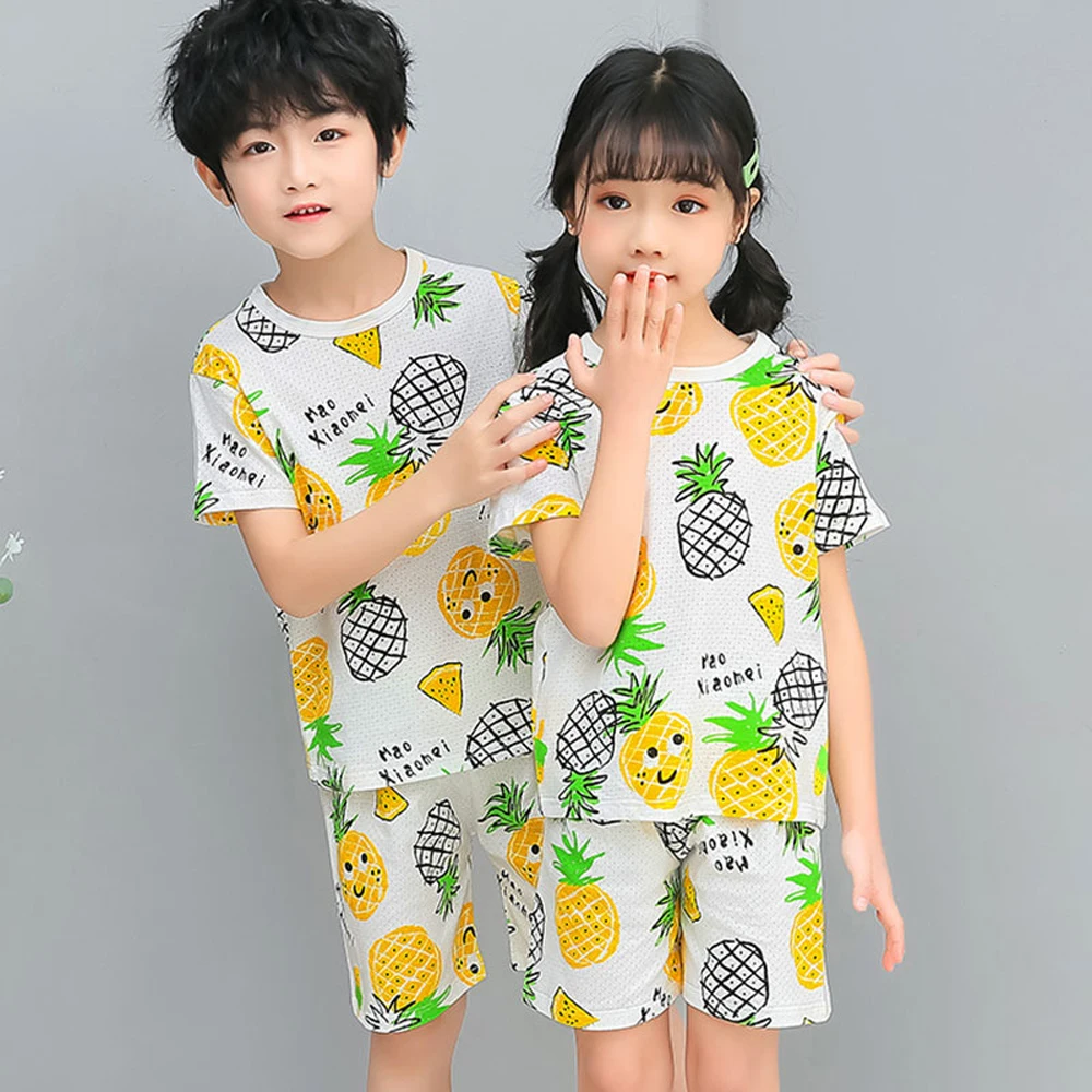 Летняя пижама для девочек и мальчиков с ананасами, детская одежда, детская одежда, одежда для сна с динозаврами, машинками, единорогом, домашняя одежда, комплекты из 2 предметов