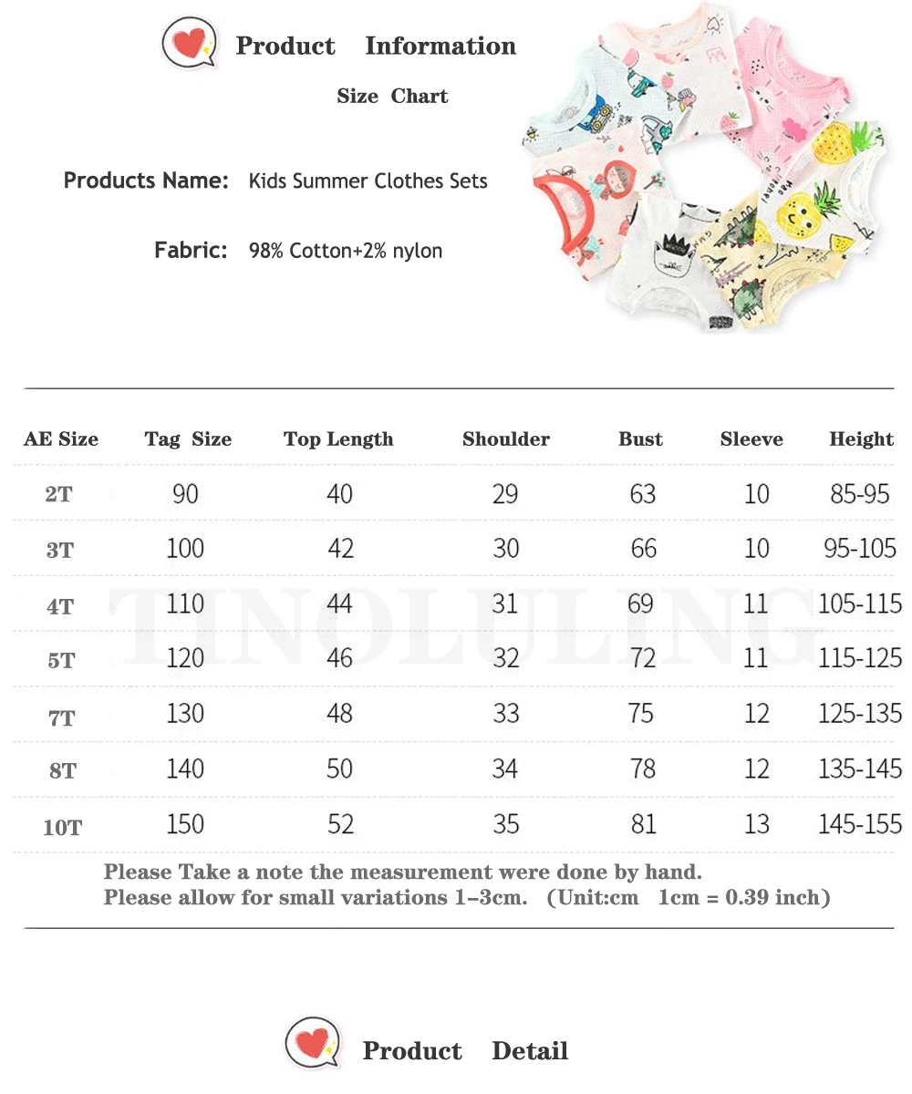 От 2 до 10 лет; Пижама для девочек и мальчиков; Летние комплекты из...