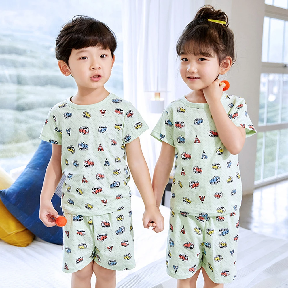 Пижама для мальчиков и девочек, футболка с коротким рукавом и шорты, Летний дышащий комплект из 2 предметов, 2021