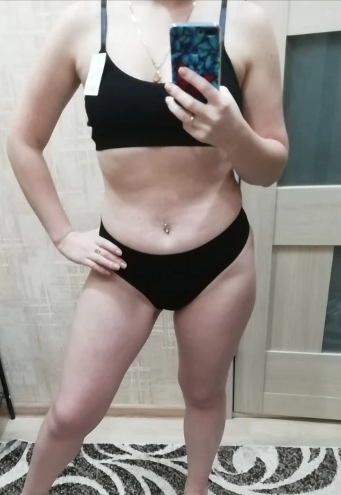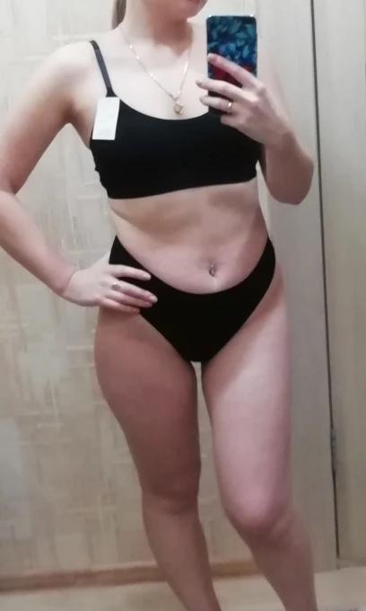Комплект суперский, удобный. Я правда немного ошиблась с размером, чуть-чуть великоват верх (заказала m). Но это не мешает.