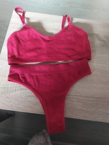 Получила сегодня комплект. Думала трусики будут на завышенной, но нет, так сидят в принципе хорошо, правда тогавата, лично для меня, резинка. Верх классный, обычный топ, невесомый, надеваешь и не чувствуешь его на теле. Так что вполне себе.